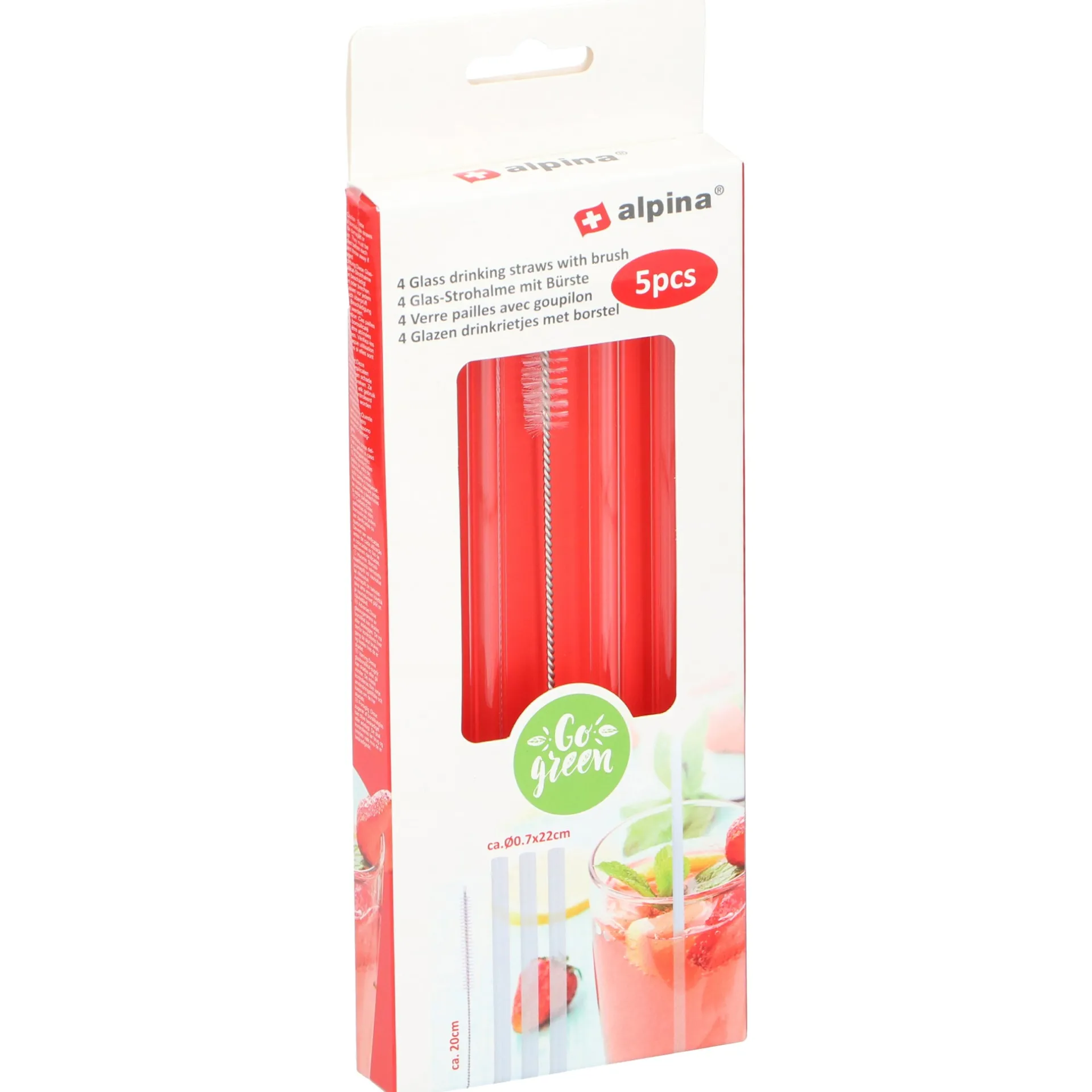 Set van vier herbruikbare rietjes van Alpina, inclusief reinigingsborstel. Gemaakt van roestvrij staal, ideaal voor koude dranken. Milieuvriendelijk alternatief voor plastic rietjes en eenvoudig schoon te maken.