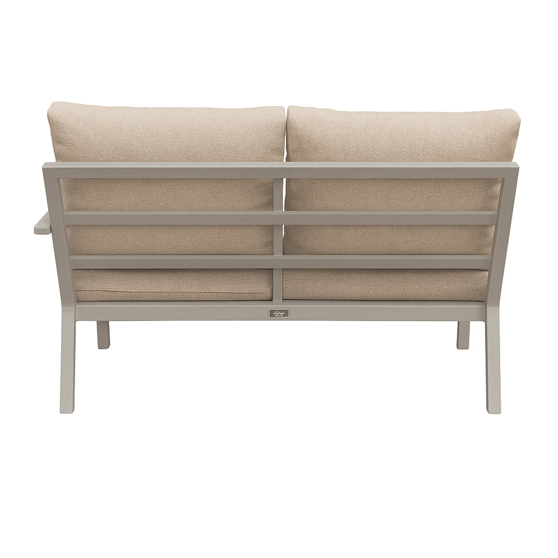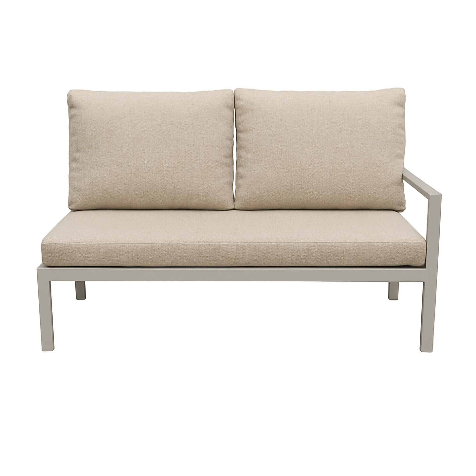 De Brozzi bank links met 2-zit is een moderne en stijlvolle bank die een luxe uitstraling heeft. De crème en grijze kleur zorgt voor een frisse en neutrale sfeer die goed te combineren is met verschillende stijlen. De bank heeft een aluminium frame dat bestand is tegen weersomstandigheden. De comfortabele kussens bieden extra ondersteuning en een optimaal zitcomfort.