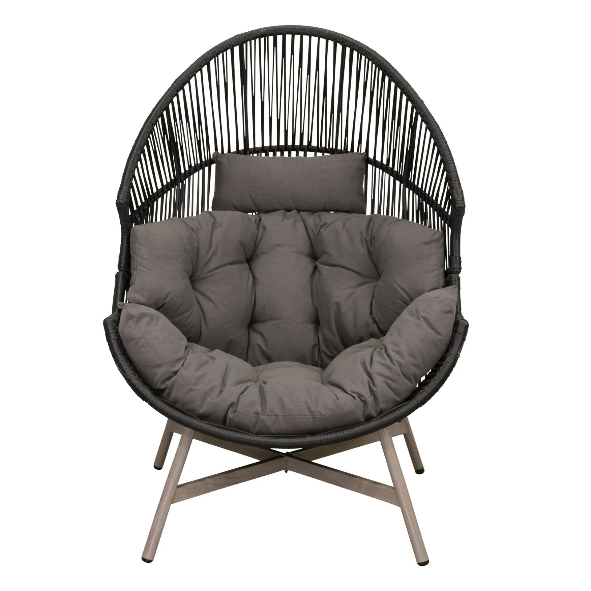 De eistoel in zwart, compleet met voet en comfortabel kussen, is een luxe en unieke toevoeging aan elke binnen- of buitenruimte. Met zijn iconische eivormige ontwerp biedt de stoel een knusse en omsloten zitervaring, ideaal om te ontspannen en tot rust te komen.