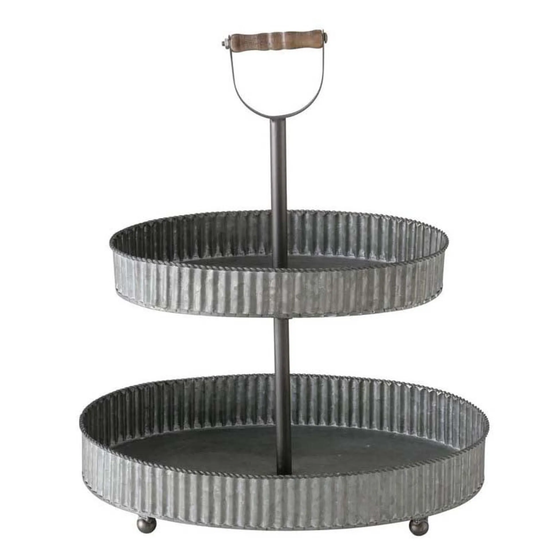 Een praktische en stijlvolle oplossing voor serveren en decoratie. Gemaakt van stevig zink, is deze etagère perfect voor het presenteren van hapjes, fruit of desserts en kan ook worden gebruikt als decoratief element in het interieur. Het klassieke ontwerp is zowel ingetogen als elegant, waardoor het ideaal is voor een feestelijke tafel of een gezellige theemiddag.