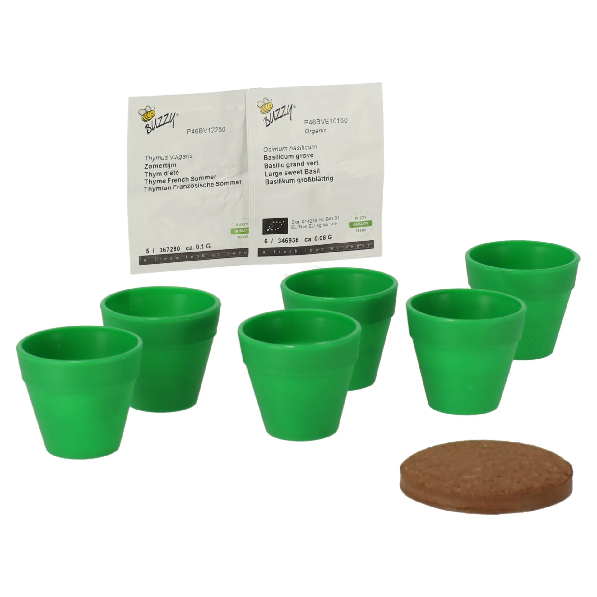 Het Herb Garden Kruiden Kweeksetje van Buzzy is leuk voor eigen gebruik of een origineel tuincadeautje. Mini kweekkasje keukenkruiden. Grove Basilicum en Wintertijm zaden. Alle Buzzy artikelen zijn direct klaar voor gebruik; volg de gebruiksaanwijzing en laat het groeien!