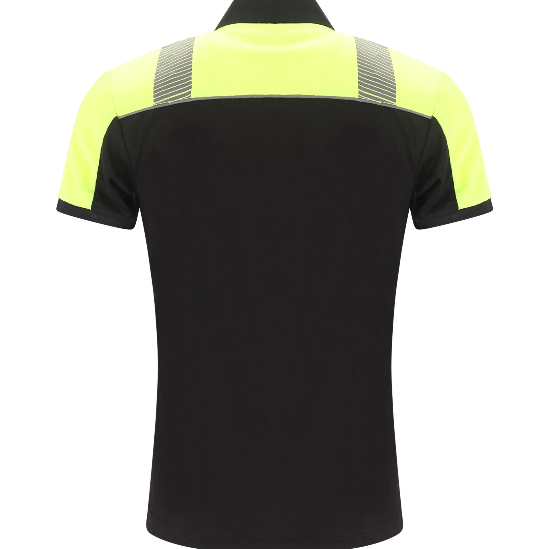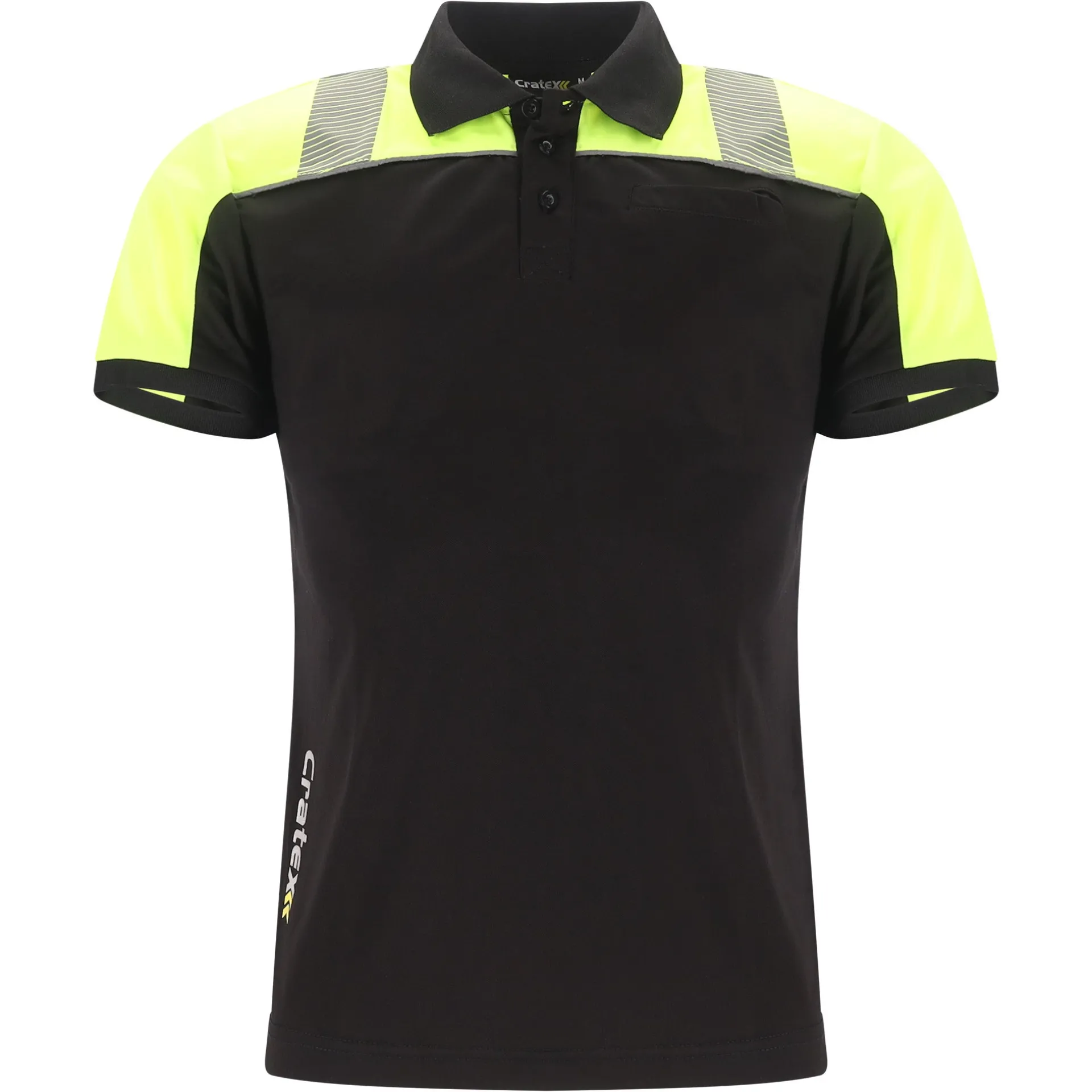 Poloshirt van Cratex met korte mouwen en kraag met knoopsluiting. Voorzien van fluorescerende schouders en reflecterende accenten voor betere zichtbaarheid. Gemaakt van comfortabel en ademend materiaal, geschikt voor buitenwerk en dagelijks gebruik.