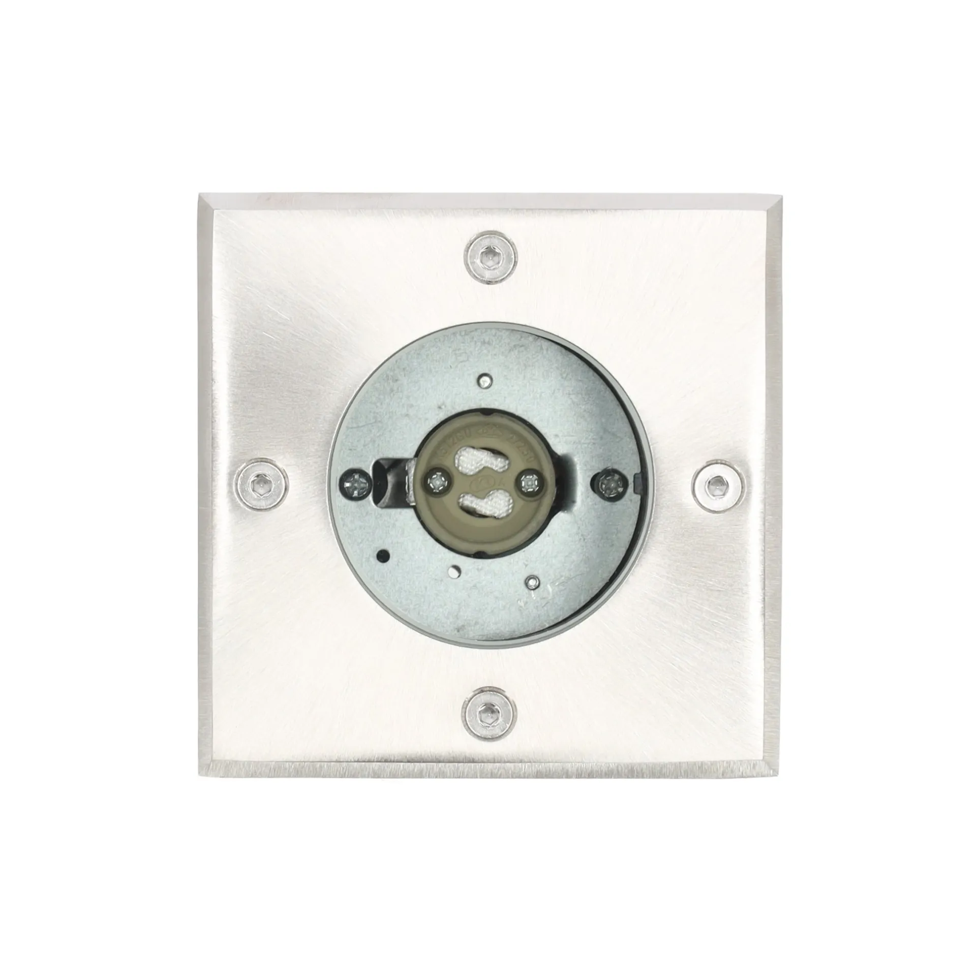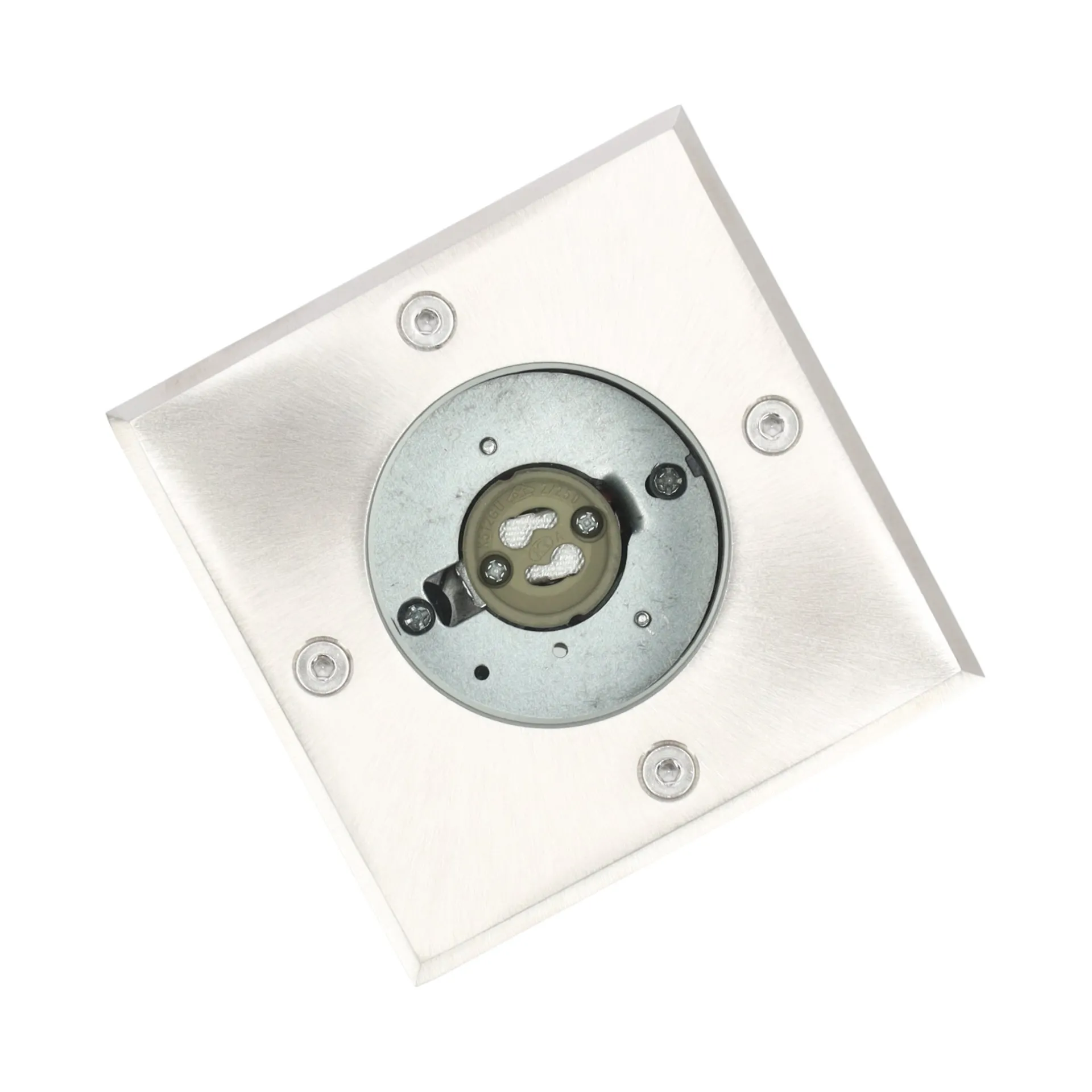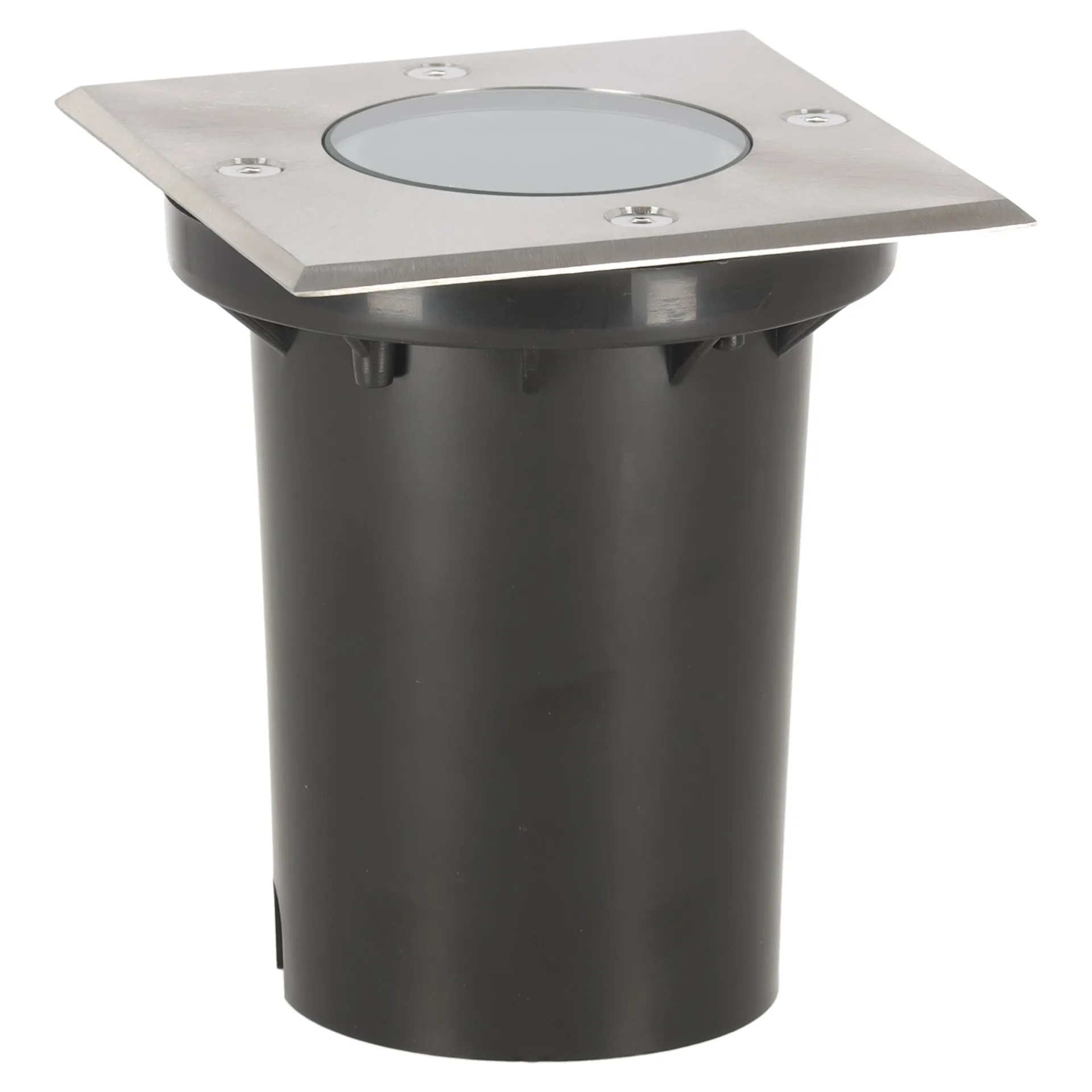 Een vierkante grondspot van roestvrij staal, 10×10 cm, die LED-verlichting biedt Ideaal voor het accentueren van paden, terrassen en vlonders.