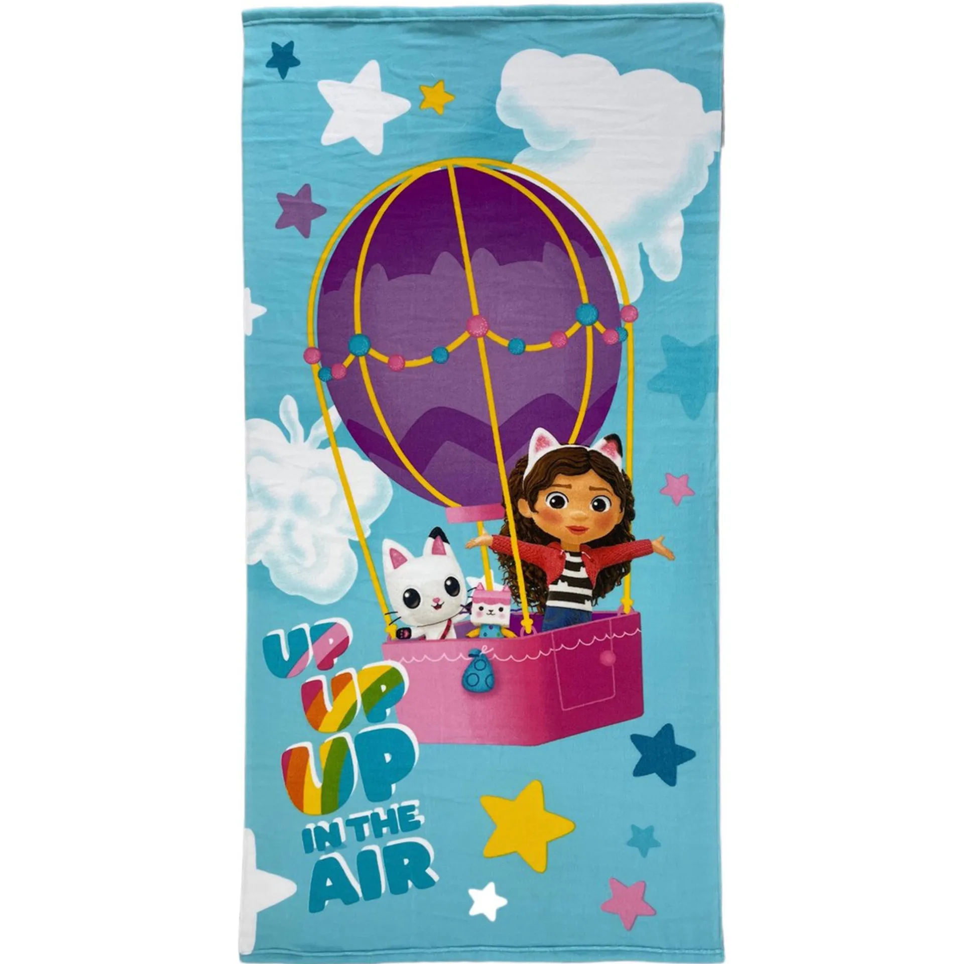 Vrolijk strandlaken van Gabby’s Poppenhuis met kleurrijk ontwerp. Zacht en goed absorberend, ideaal voor stranddagen, aan het zwembad of na het badderen.