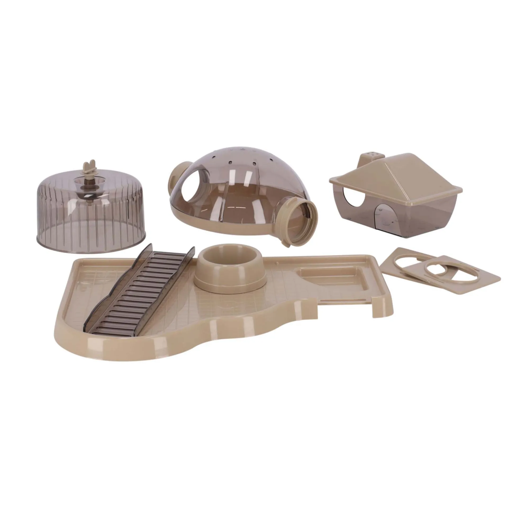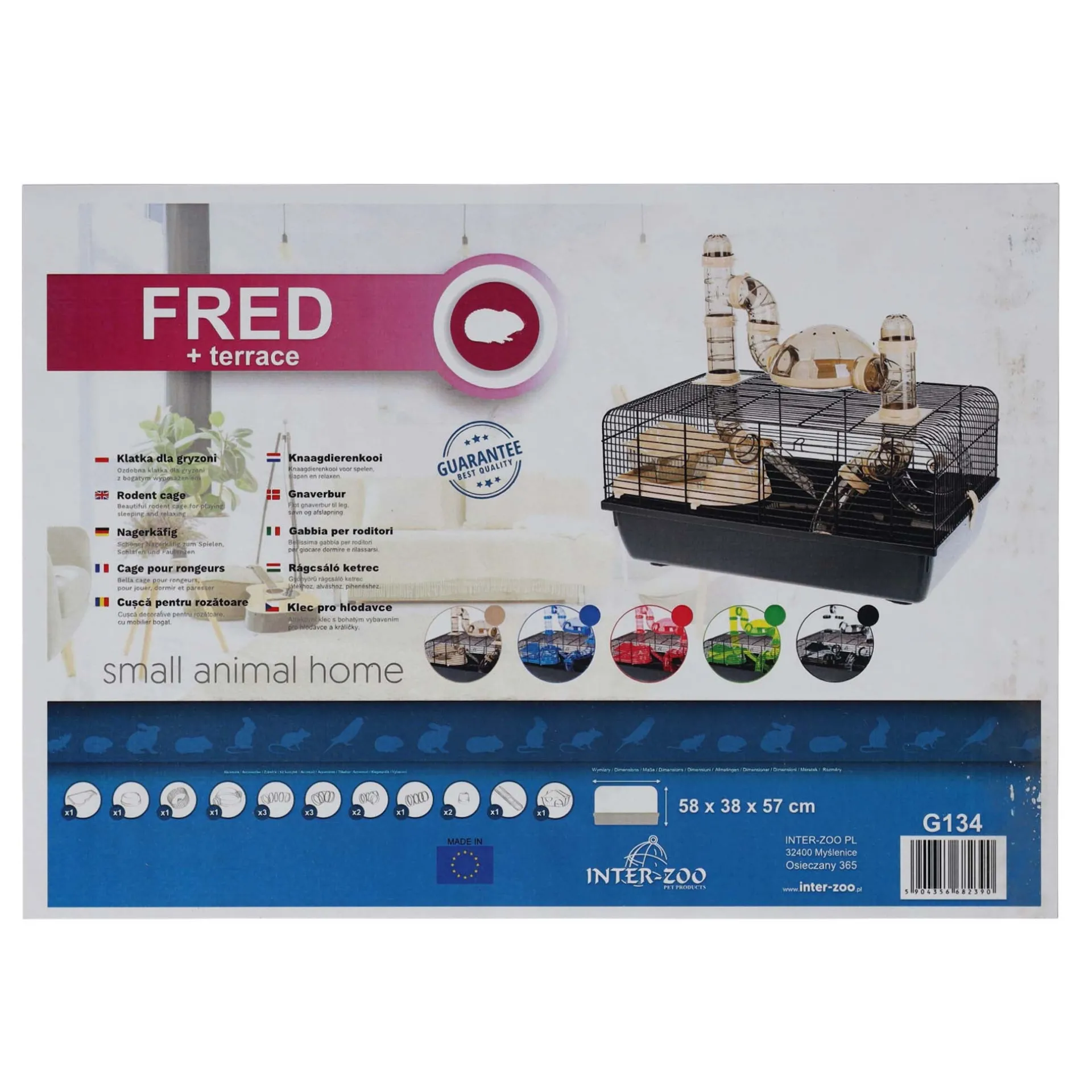 De Fred hamsterkooi biedt jouw hamster een veilige en avontuurlijke leefomgeving. Voorzien van meerdere niveaus, tunnels en een loopwiel, stimuleert deze kooi beweging en verkenning. Gemaakt van stevig materiaal en ontworpen met optimale ventilatie, blijft je hamster gezond en tevreden. De kooi is compact en eenvoudig schoon te maken, met stevige sluitingen die ervoor zorgen dat je hamster veilig binnen blijft.