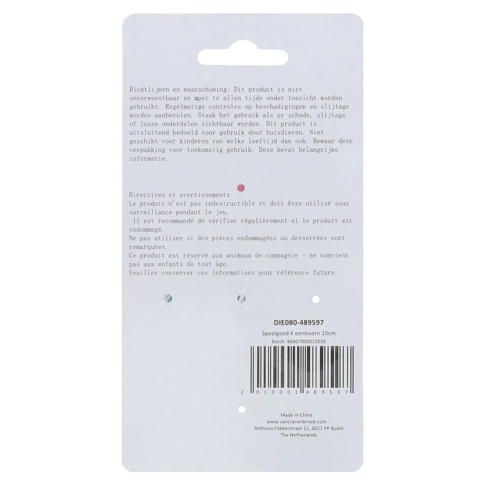 Met zijn zachte pluche en vrolijke eenhoornvorm is dit kattenspeeltje ideaal om mee te slaan en te spelen. Het compacte formaat van 10 cm maakt het geschikt voor katten van alle leeftijden.