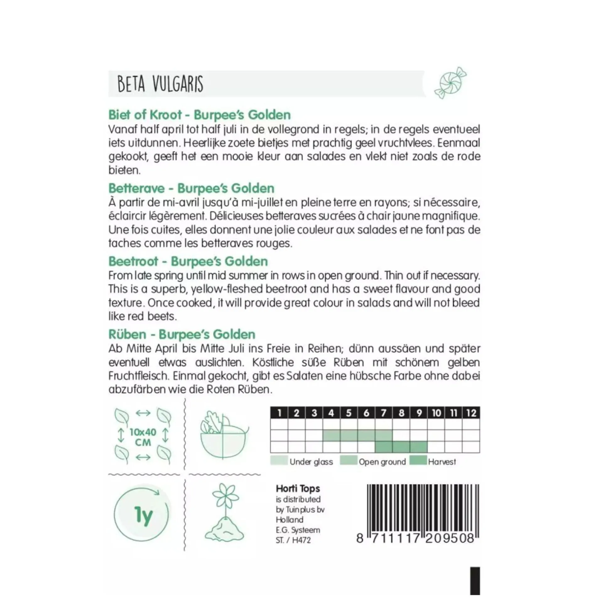 Kenmerkt zich door de heldere gouden kleur en zoete smaak. Een uitstekende keuze voor tuin- of moestuinverbouw. Perfect voor gebruik in salades, sappen en andere gerechten. Weerstand tegen ziektes en gemakkelijk op te slaan.