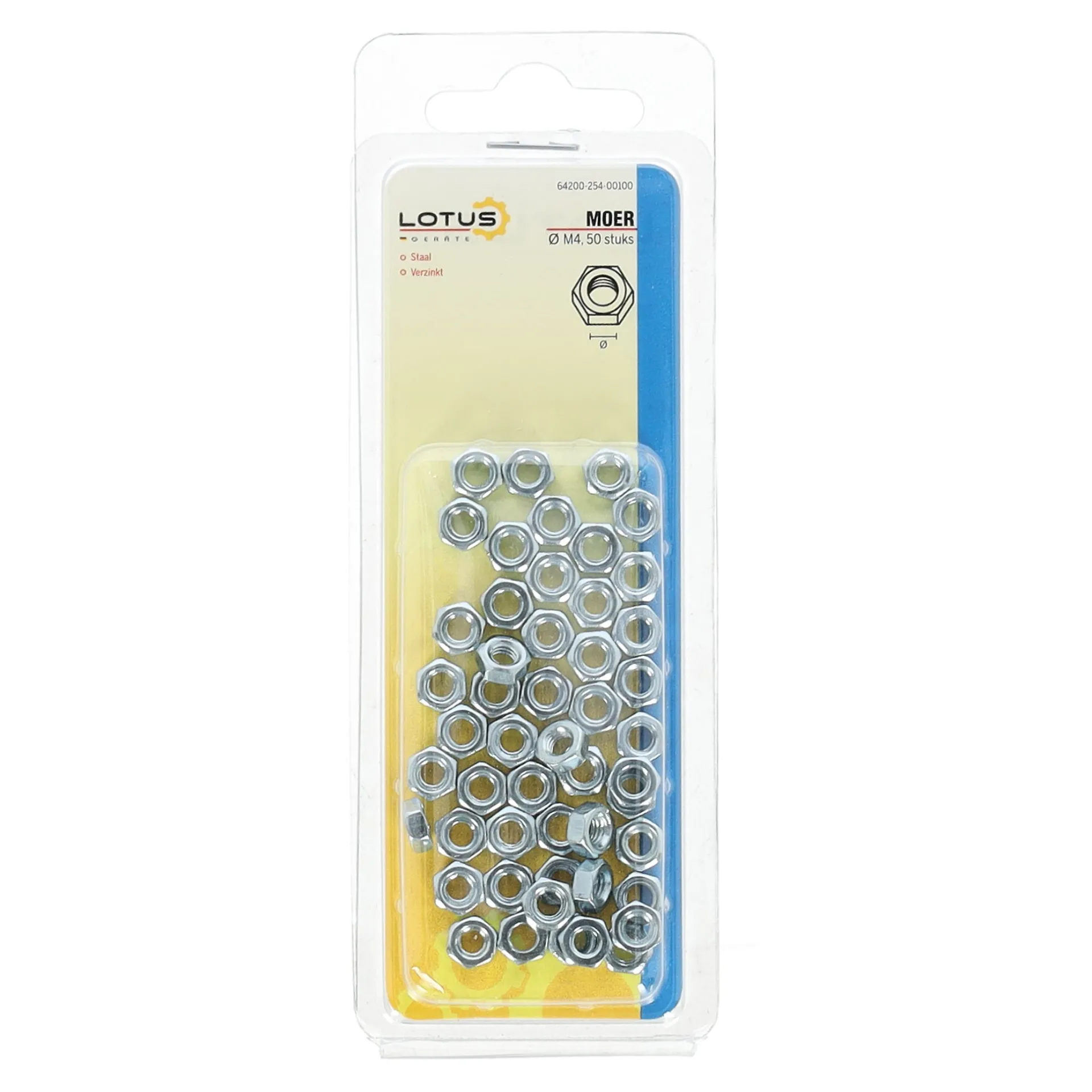 Lotus moer M4 verzinkt 50 stuks is een set zeskantmoeren met metrische draadmaat M4. De moeren zijn gemaakt van staal en verzinkt, wat zorgt voor een basisbescherming tegen roest. Deze verpakking bevat 50 stuks en is geschikt voor het vastzetten van M4-bouten of -draadstangen bij lichte montage- en bevestigingswerkzaamheden.
