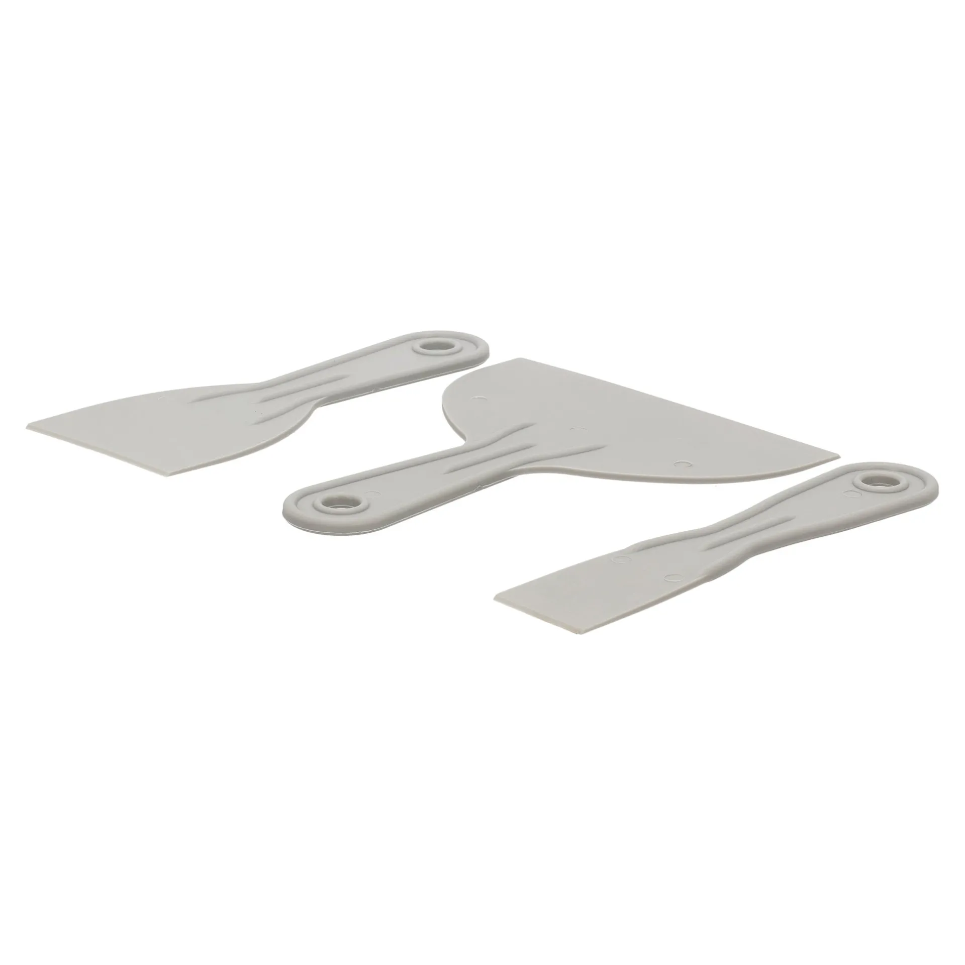 Lotus 3-delige set, met kunststof plamuurmessen van 38, 76 en 152 mm breed. Geschikt voor het aanbrengen en gladstrijken van plamuur of vulmiddel op wanden en plafonds.