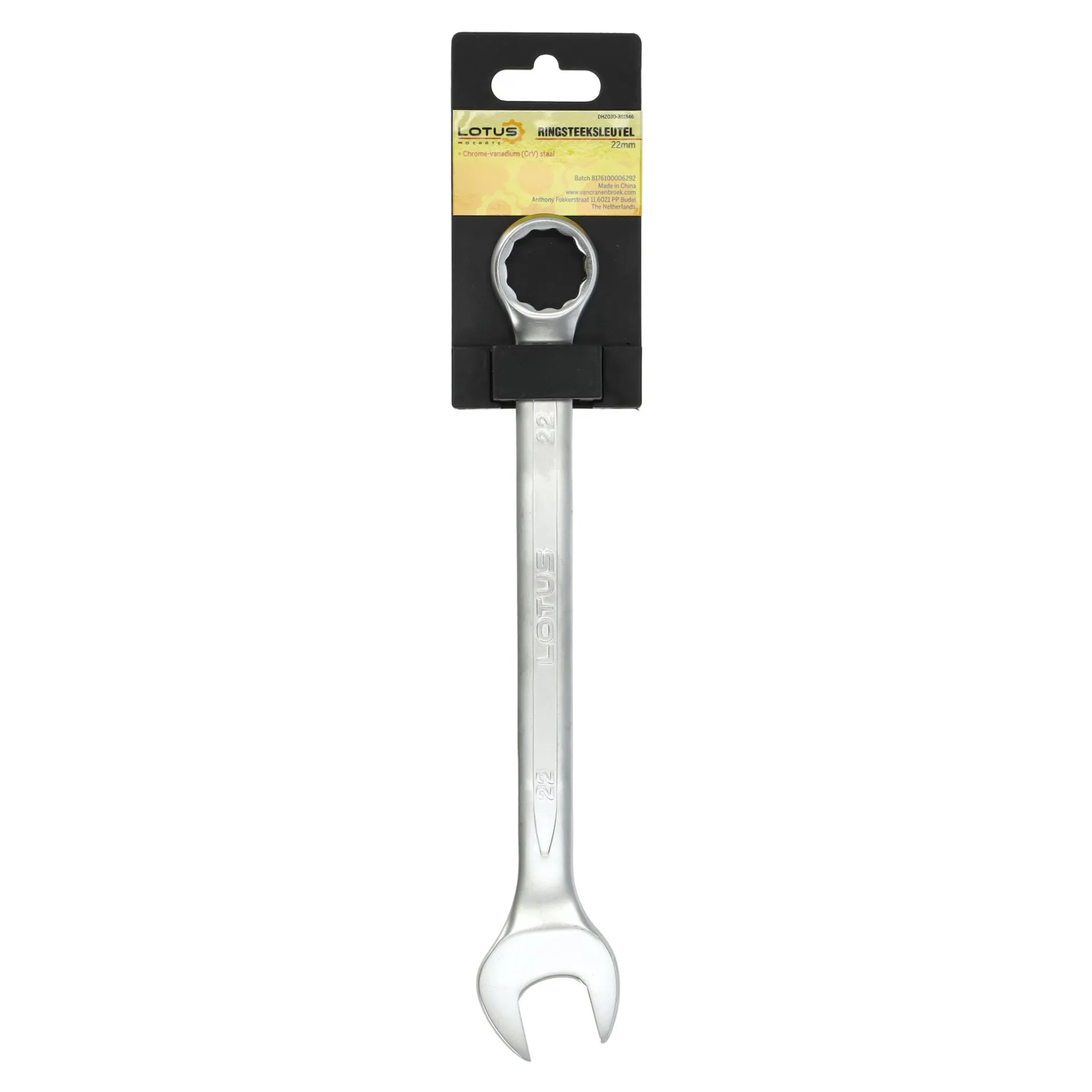 De 22 mm CV Lotus ringsteeksleutel is een hoogwaardig gereedschap dat een ringsleutel en steeksleutel combineert. Gemaakt van chroom-vanadiumstaal (CV), biedt het uitstekende sterkte en duurzaamheid. Dit gereedschap is perfect voor nauwkeurig werk waarbij een stevige grip met minimale inspanning nodig is. Een uitstekende keuze voor zowel professionals als doe-het-zelvers.
