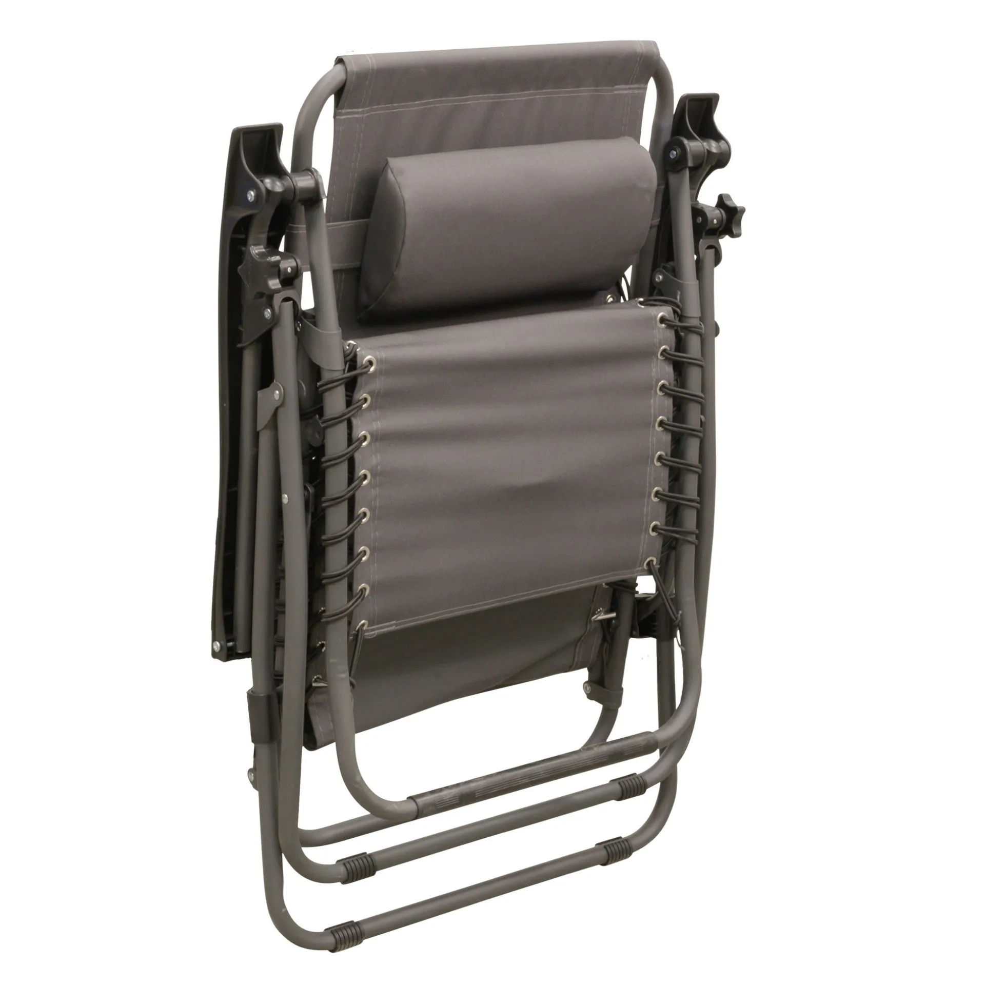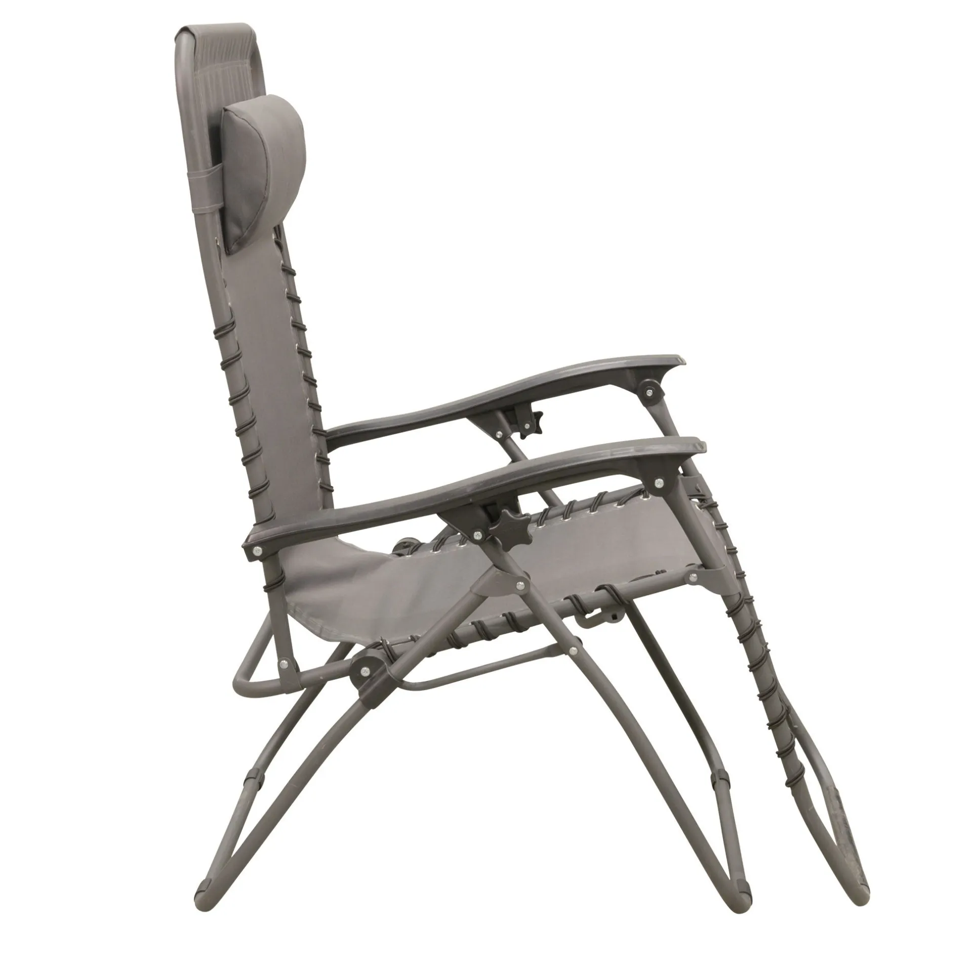 Relaxstoel met verstelbare hoofdsteun, ideaal voor strand en tuin, eenvoudig naar achteren te leunen en vast te zetten in elke positie.
