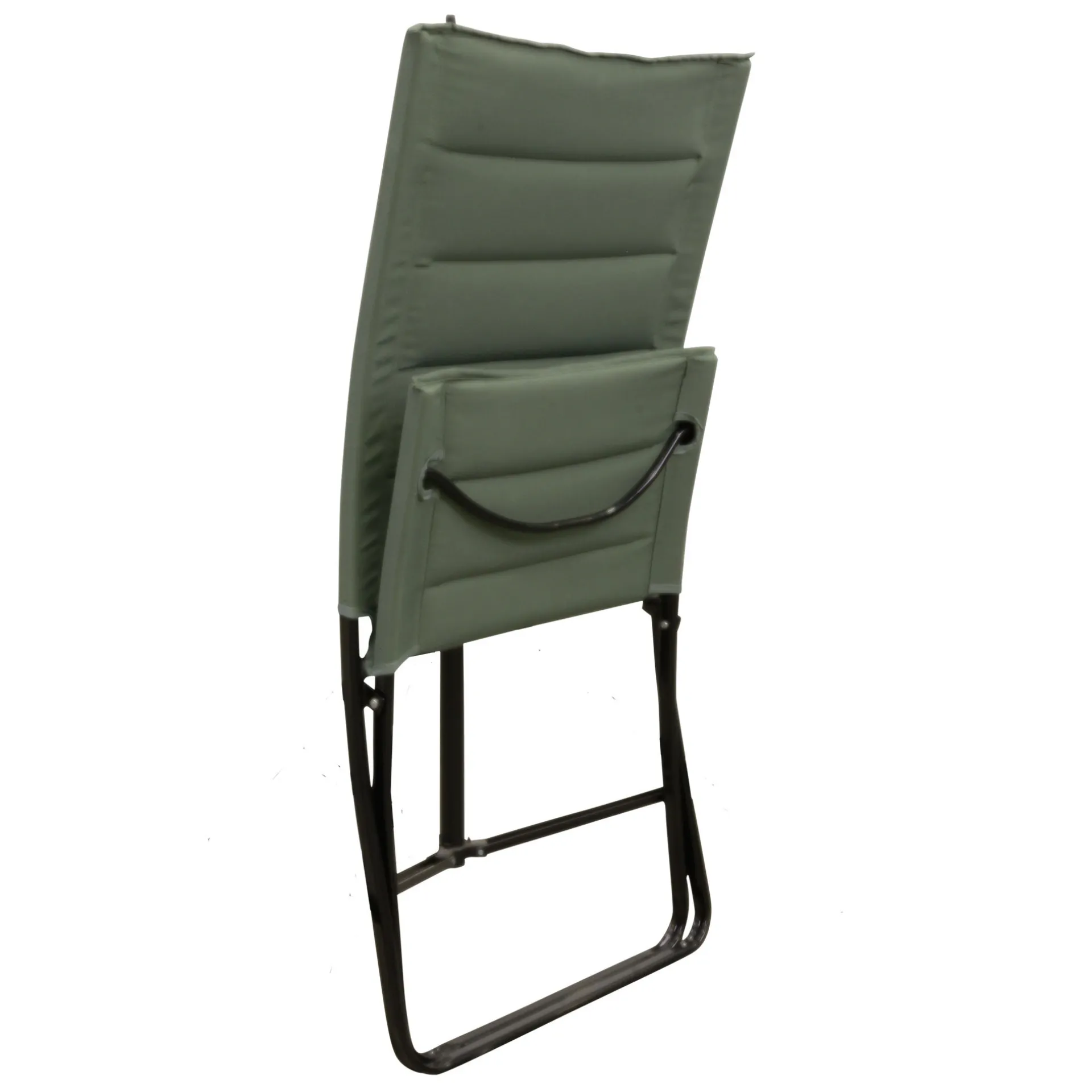 Praktische vouwstoel met extra padding op zit- en rugvlak voor meer comfort. Licht, stevig en makkelijk mee te nemen. Ideaal voor thuis, tuin, terras of kampeertrips.