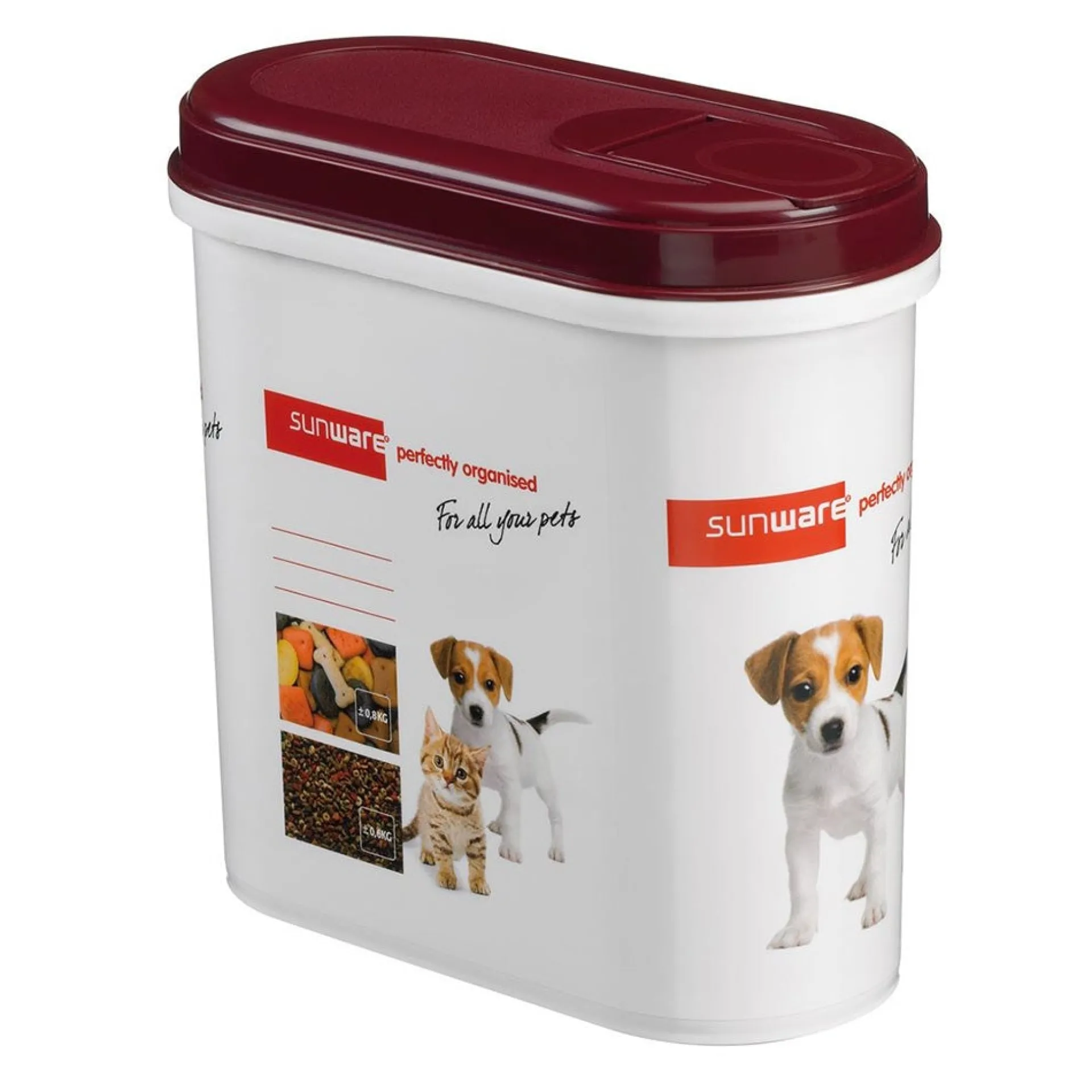 De Sunware Gallery-line pet decor voorraadbox van 2,2 liter is ideaal voor het bewaren van droogvoer, snacks of andere benodigdheden voor huisdieren. De box is gemaakt van stevig kunststof en voorzien van een goed sluitend deksel zodat de inhoud vers blijft. Dankzij het compacte formaat is de container handig in dagelijks gebruik.