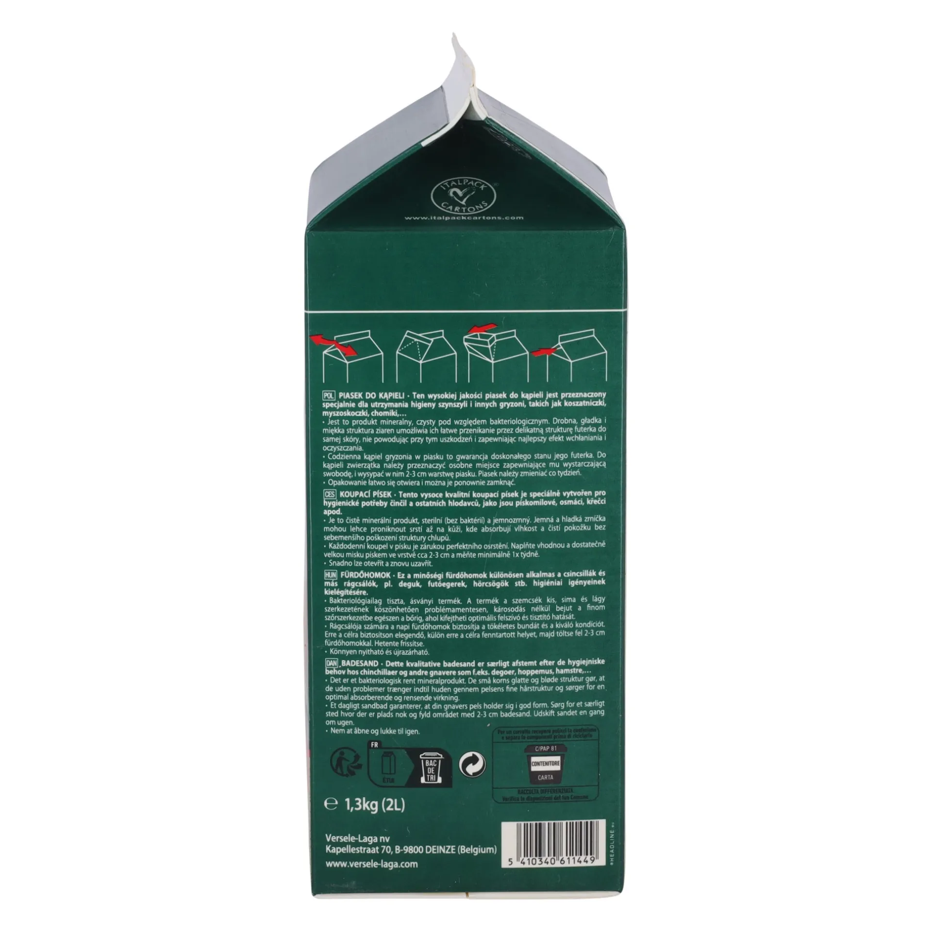 Dit kwalitatieve badzand is speciaal ontwikkeld voor de hygiëne van chinchilla’s en andere knaagdieren zoals degoes, gerbils en hamsters. De zachte, gladde korrels zijn optimaal absorberend en reinigen effectief. Bacteriologisch zuiver en ideaal voor dagelijks gebruik.