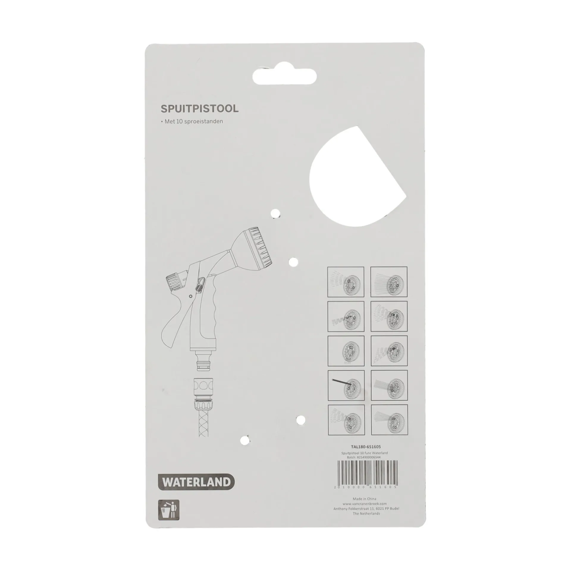Het Waterland spuitpistool werkt in alle situaties. Hierdoor kun je het gras in de tuin water geven, de auto wassen of het zwembad vullen. Het apparaat is uitgerust met 10 verschillende sproeistanden die aan uw behoeften kunnen worden aangepast.