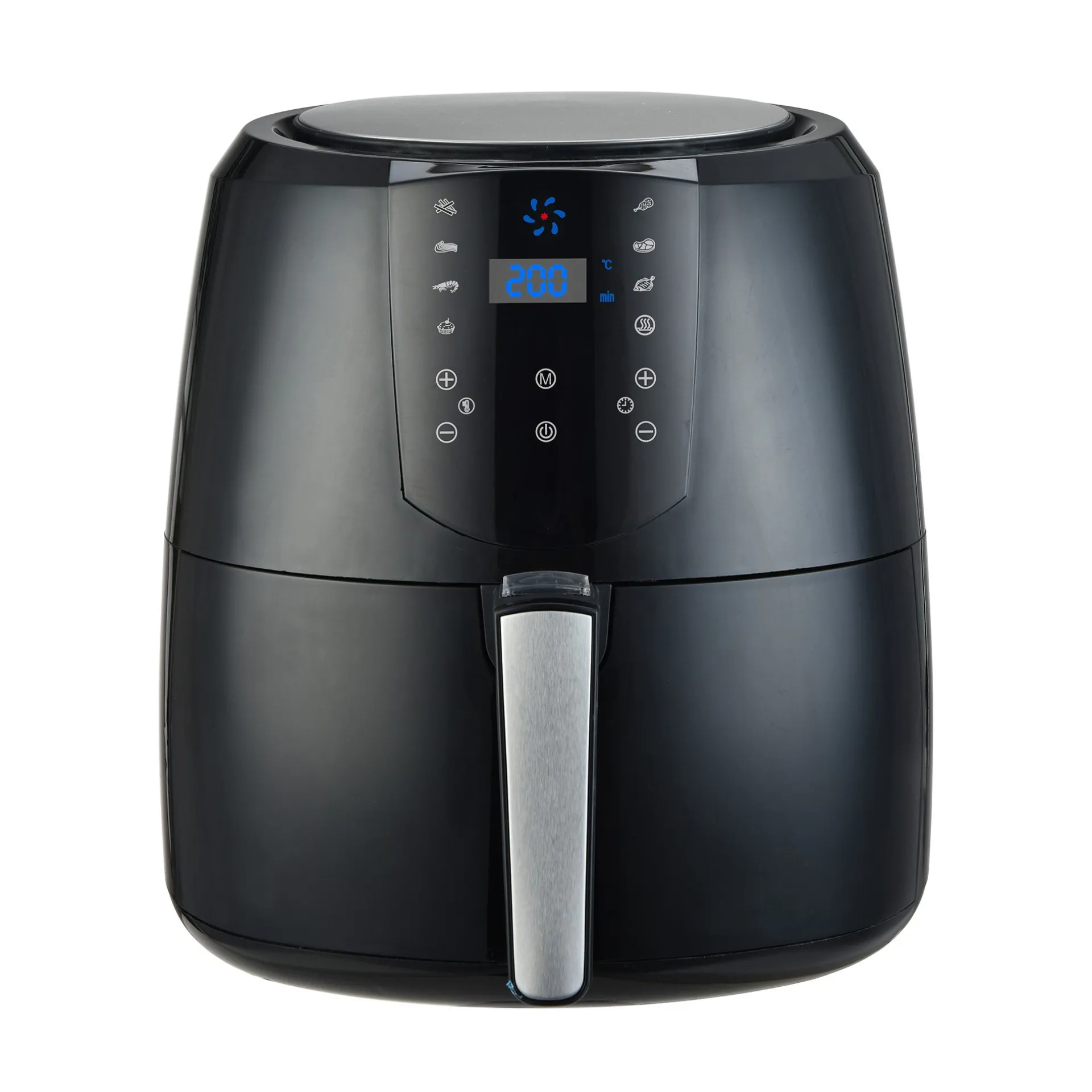 Digitale airfryer met een inhoud van 5,2 liter. Geschikt voor het bereiden van knapperige en gezonde gerechten met weinig tot geen olie. Voorzien van een gebruiksvriendelijk digitaal display en vooraf ingestelde programmaās.