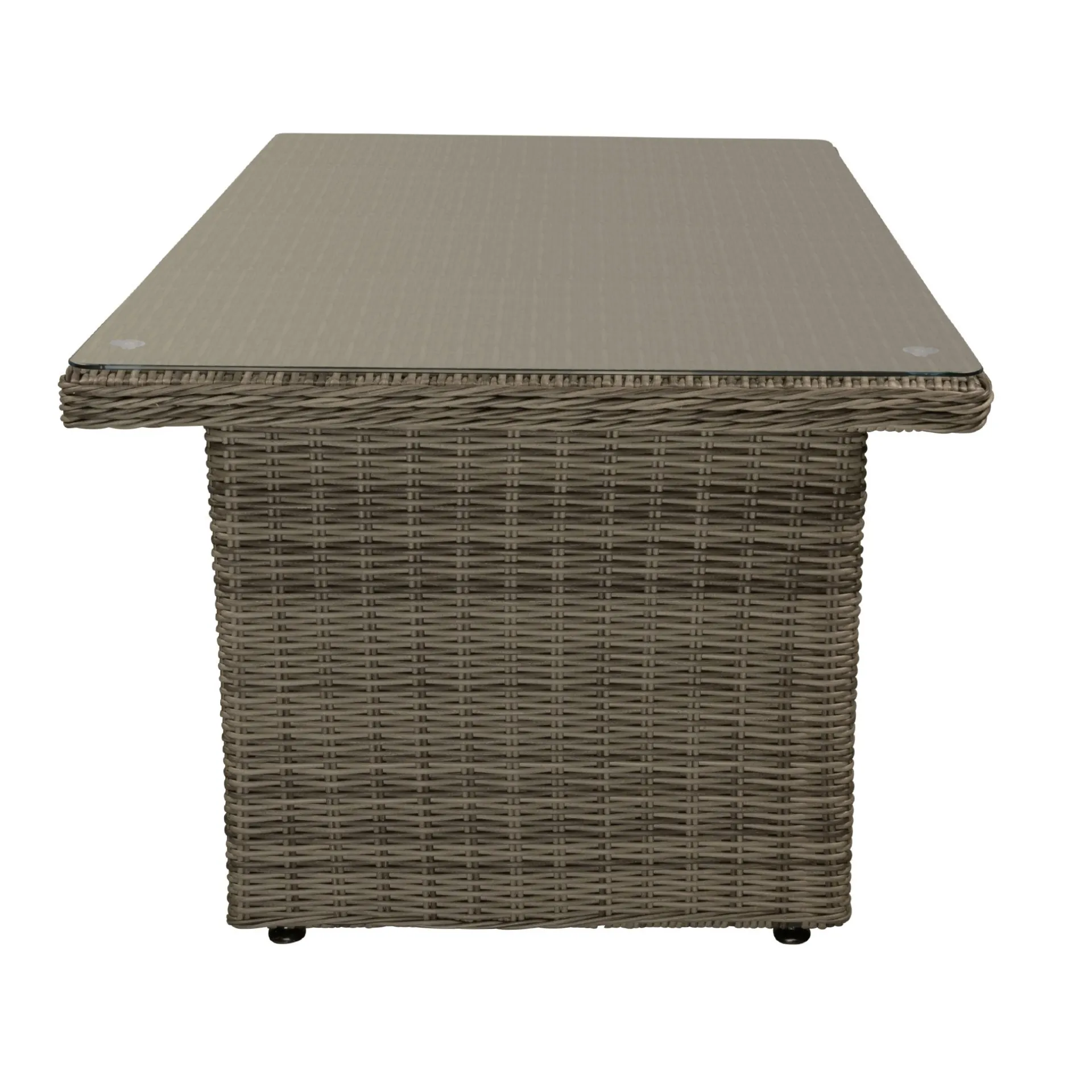 Deze stijlvolle tafel heeft een stevig aluminium frame en een duurzaam polywood blad, ideaal voor buitengebruik. Het hoogwaardige, UV- en weersbestendige kunststof vlechtwerk zorgt voor een lange levensduur en eenvoudig onderhoud. Perfect voor elke tuin of terras.