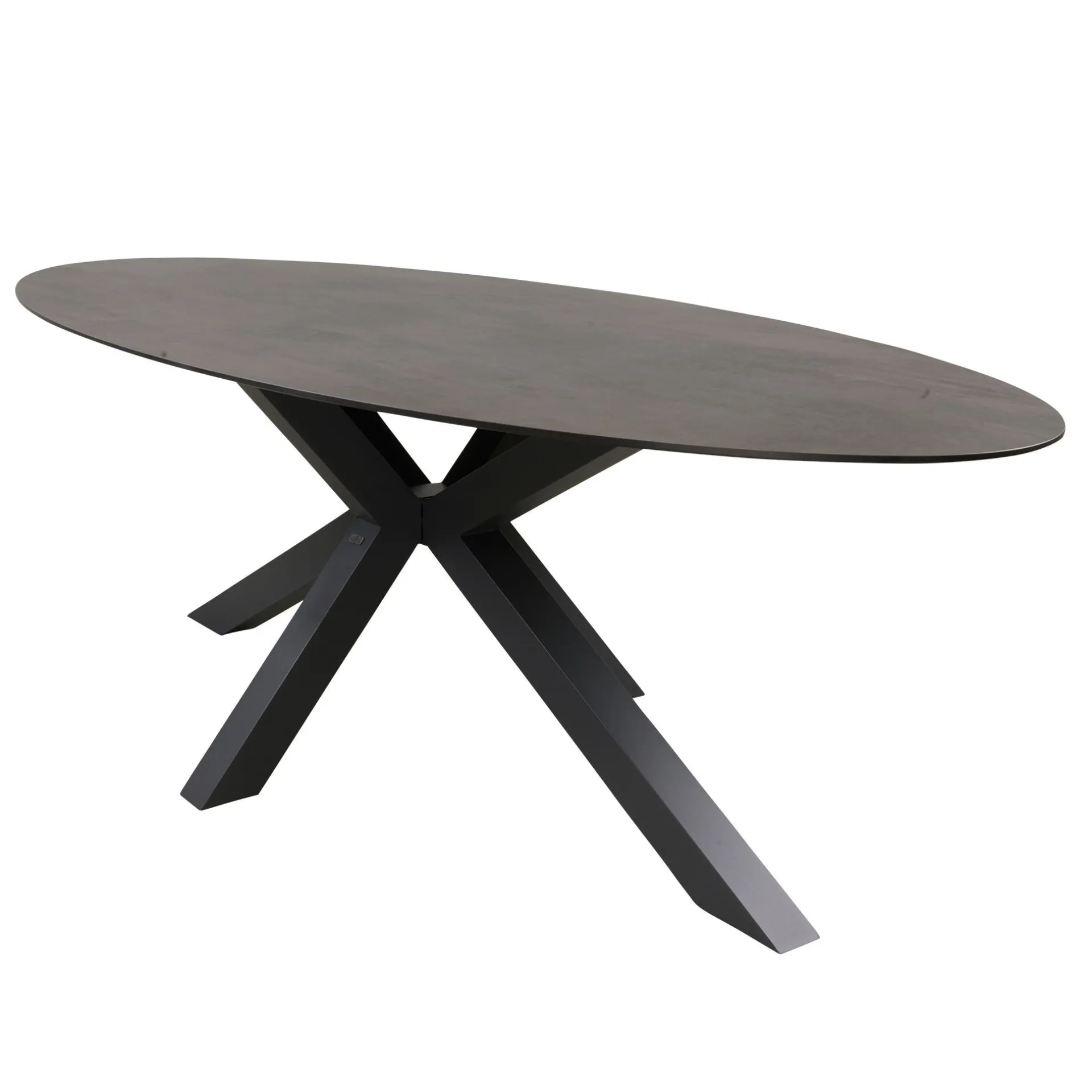 De ovale tafel met kruispoot is een praktische en onderhoudsvrije tafel voor binnen of buiten. Het keramisch blad is gecombineerd met een aluminium frame dat niet kan roesten. Uitgevoerd in antraciet, met een stevige en eigentijdse uitstraling.