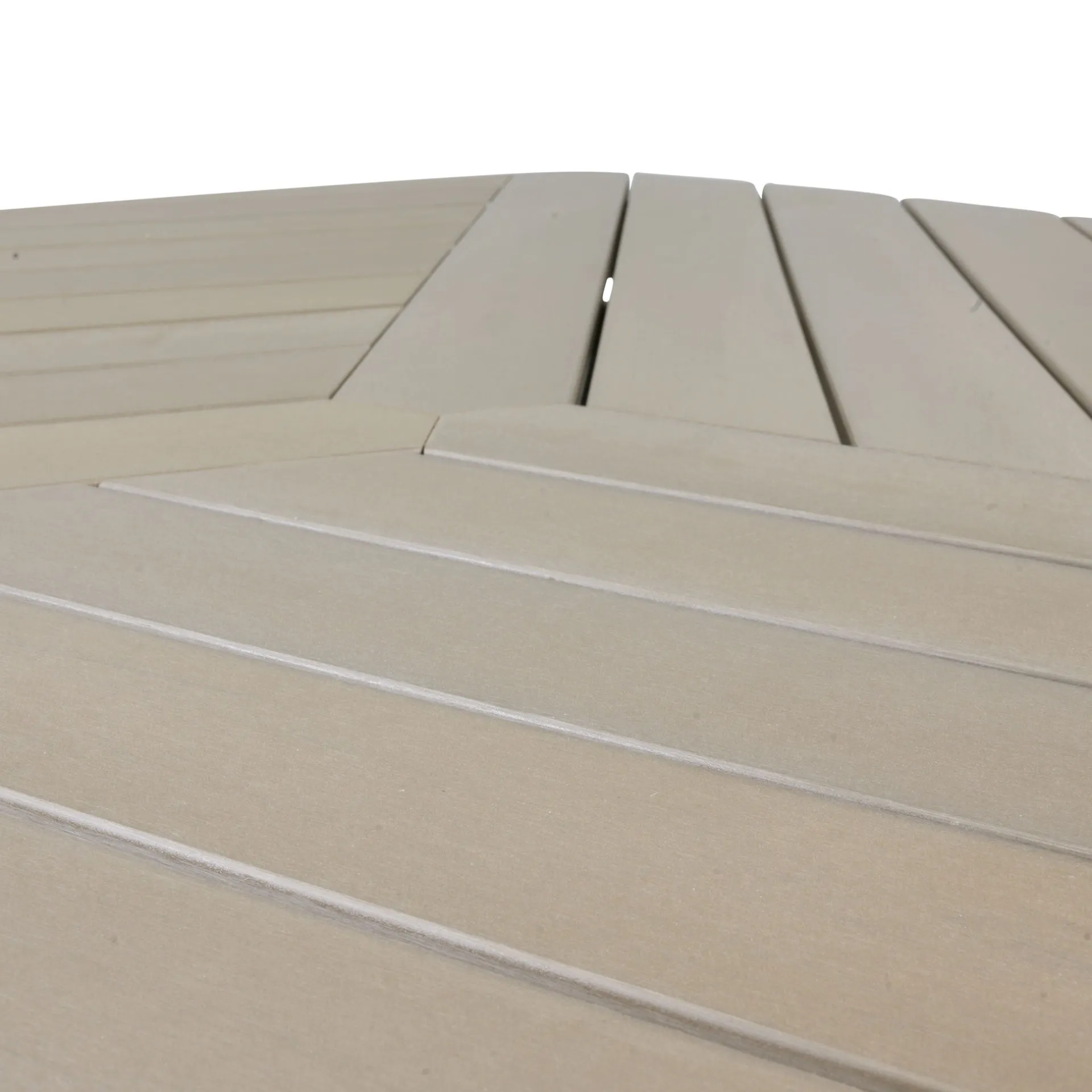 De Fidenza tafel is een moderne driehoekachtige tafel, geschikt voor zowel binnen als buiten. Het aluminium frame maakt de tafel licht en roestvrij, terwijl het pollywood blad zorgt voor een stevige en onderhoudsvriendelijke afwerking. Omdat polywood deels hout bevat, kan het vlekken van eten en drinken opnemen. Om dit te voorkomen en het materiaal in topconditie te houden, raden we u aan om Polywood Protector en Reiniger te gebruiken. Lees de handleiding voor meer informatie.