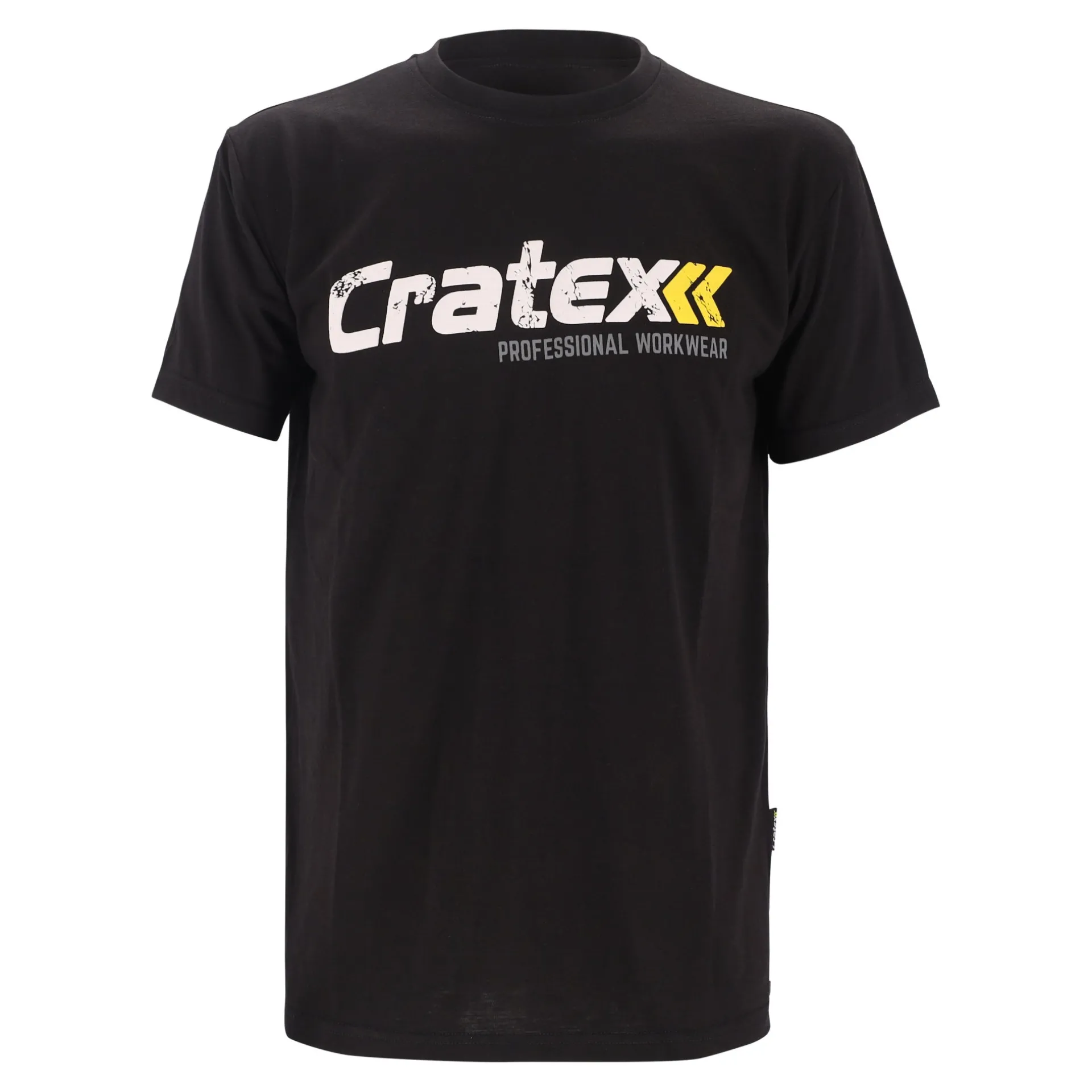 Zwart T-shirt met korte mouwen van Cratex. Het heeft een groot logo op de borst.
