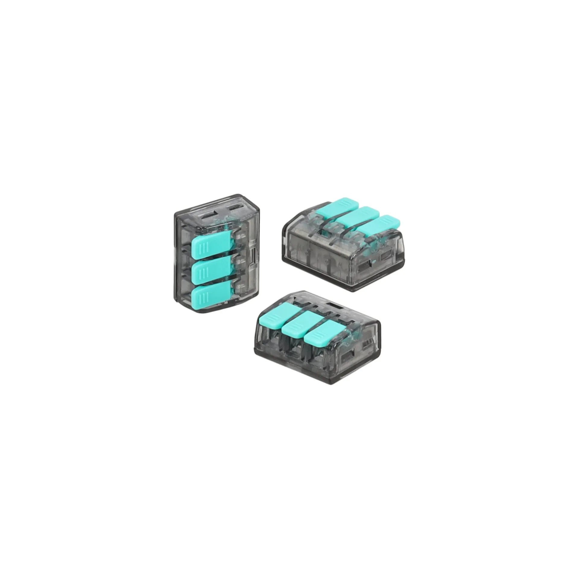 Deze Diamant steekklemmen met blauwe hendel zijn geschikt voor het eenvoudig verbinden van drie elektrische draden van 0,5 tot 4 mm². De hendel maakt een snelle en veilige aansluiting mogelijk zonder gereedschap. Alleen geschikt voor binnentoepassing (IP20).