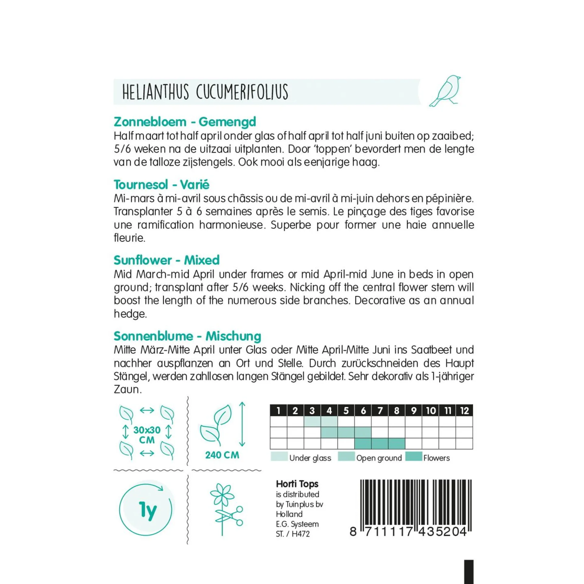 De Helianthus Mix is een zonnebloem met een vrolijke variatie aan kleuren en vormen. Deze zomerbloeier is ideaal voor in de border of als snijbloem en zorgt voor een zonnige uitstraling in de tuin.