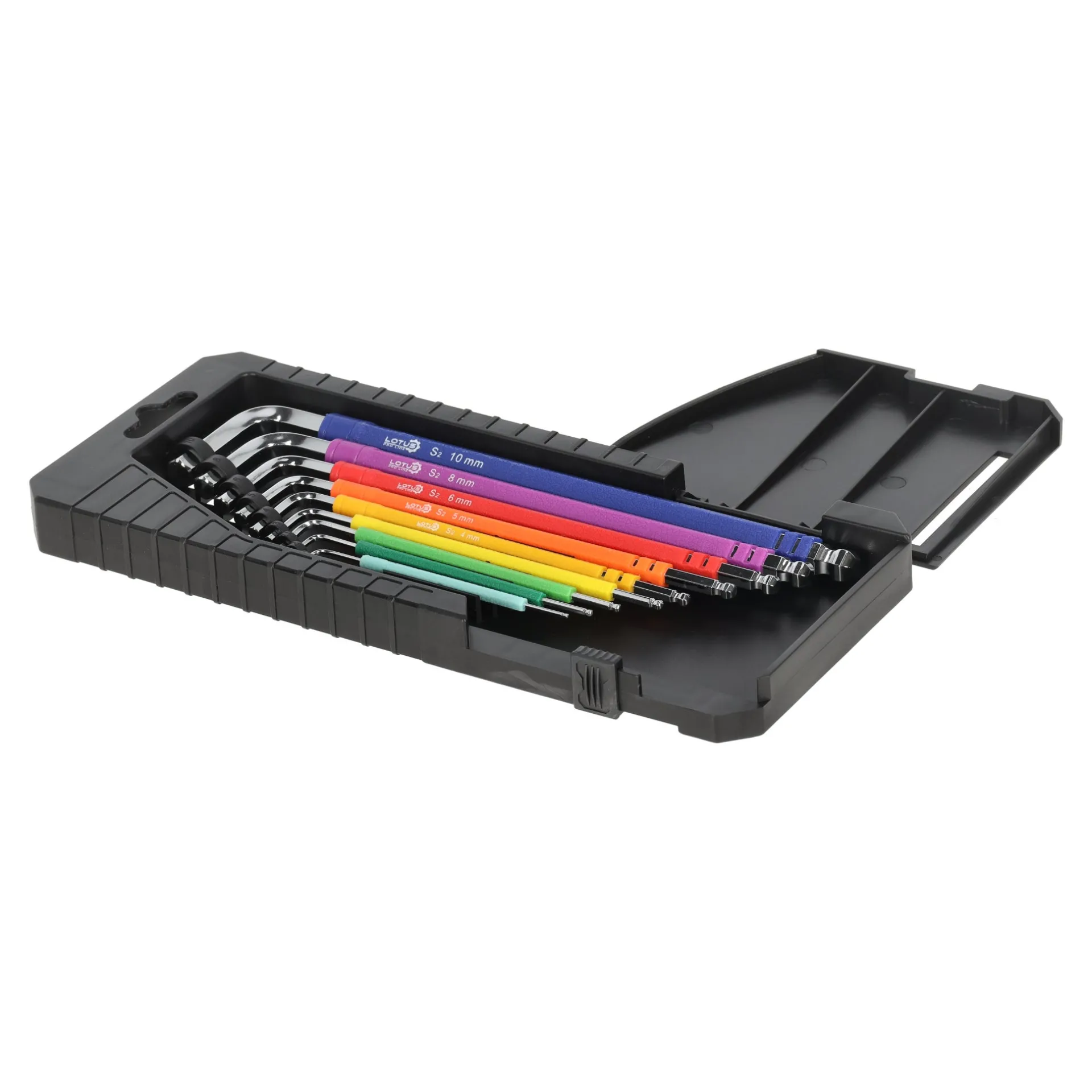 Een betrouwbare tool voor het werken met bevestigingselementen op moeilijk bereikbare plaatsen. De kogelkop maakt het mogelijk om de sleutels onder een hoek te gebruiken, wat het werk eenvoudiger en sneller maakt. Gemaakt van sterk S2 staal voor duurzaamheid en slijtvastheid. De compacte houder helpt om de gereedschappen georganiseerd te houden, terwijl de kleur handig is bij het kiezen van de juist maat.