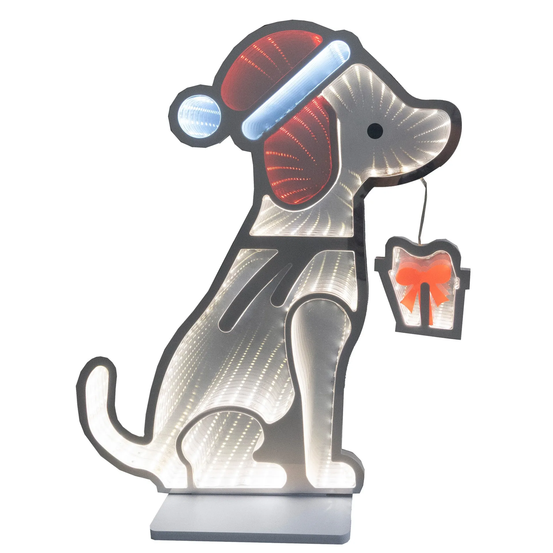 Kerstverlichting in de vorm van een hond met kerstmuts. Door de 178 LED’s geeft het een sfeervol effect in huis.