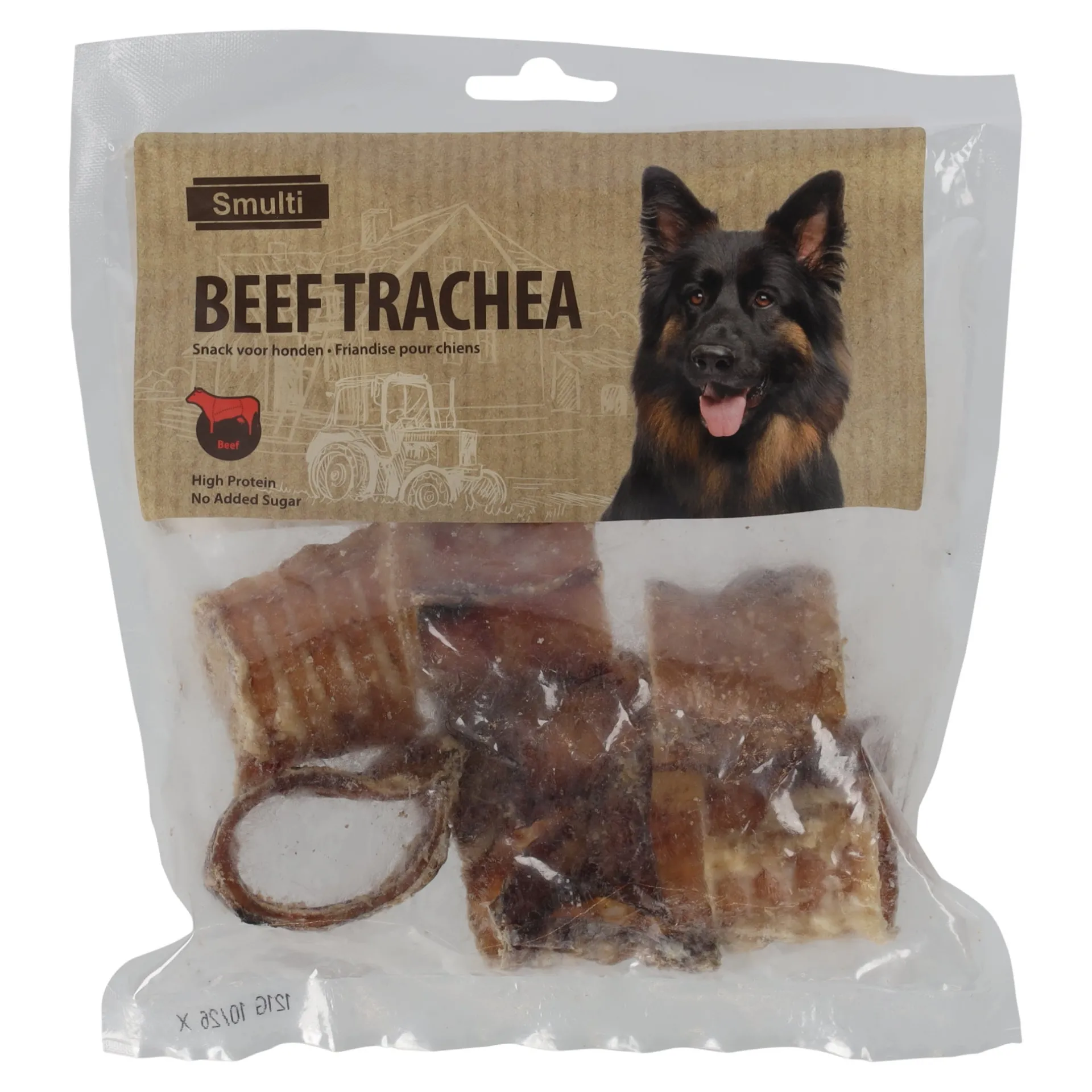 De snack luchtpijp is een natuurlijke en eiwitrijke kauwsnack voor honden, gemaakt van gedroogde luchtpijp. Deze snack is ideaal voor langdurig kauwplezier en helpt bij het reinigen van het gebit door tandplak en tandsteen te verminderen. De luchtpijp is volledig natuurlijk en vrij van kunstmatige toevoegingen, wat het een verantwoorde keuze maakt als tussendoortje of beloning. Door de knapperige textuur is deze snack extra aantrekkelijk en zorgt hij voor een goede bezigheid voor je hond. Geschikt voor honden van alle rassen en leeftijden die houden van een natuurlijke kauwsnack boordevol smaak en voedingsstoffen! Laat de hond niet alleen met kauwmateriaal. Zorg voor vers water.