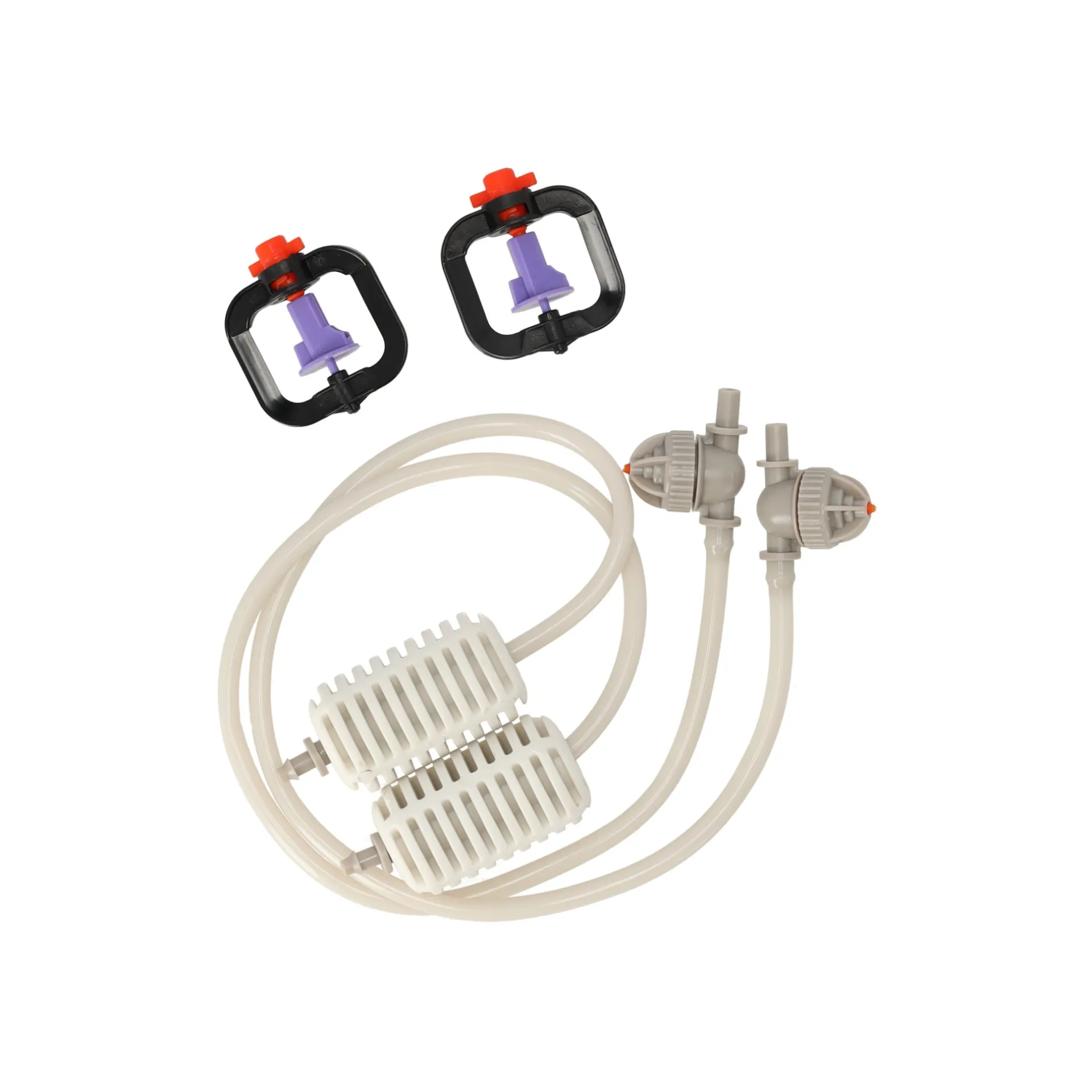 Een hangende microsproeier, veelzijdig toepasbaar in landbouw- en tuinirrigatie. Voorzien van een roterende kop die begint te draaien bij watercontact. Geschikt voor een druk van 2,0–3,0 bar, met een straal van 2,5–4,5 meter en een wateropbrengst van 100–200 L/H. Verpakt per 2 stuks.