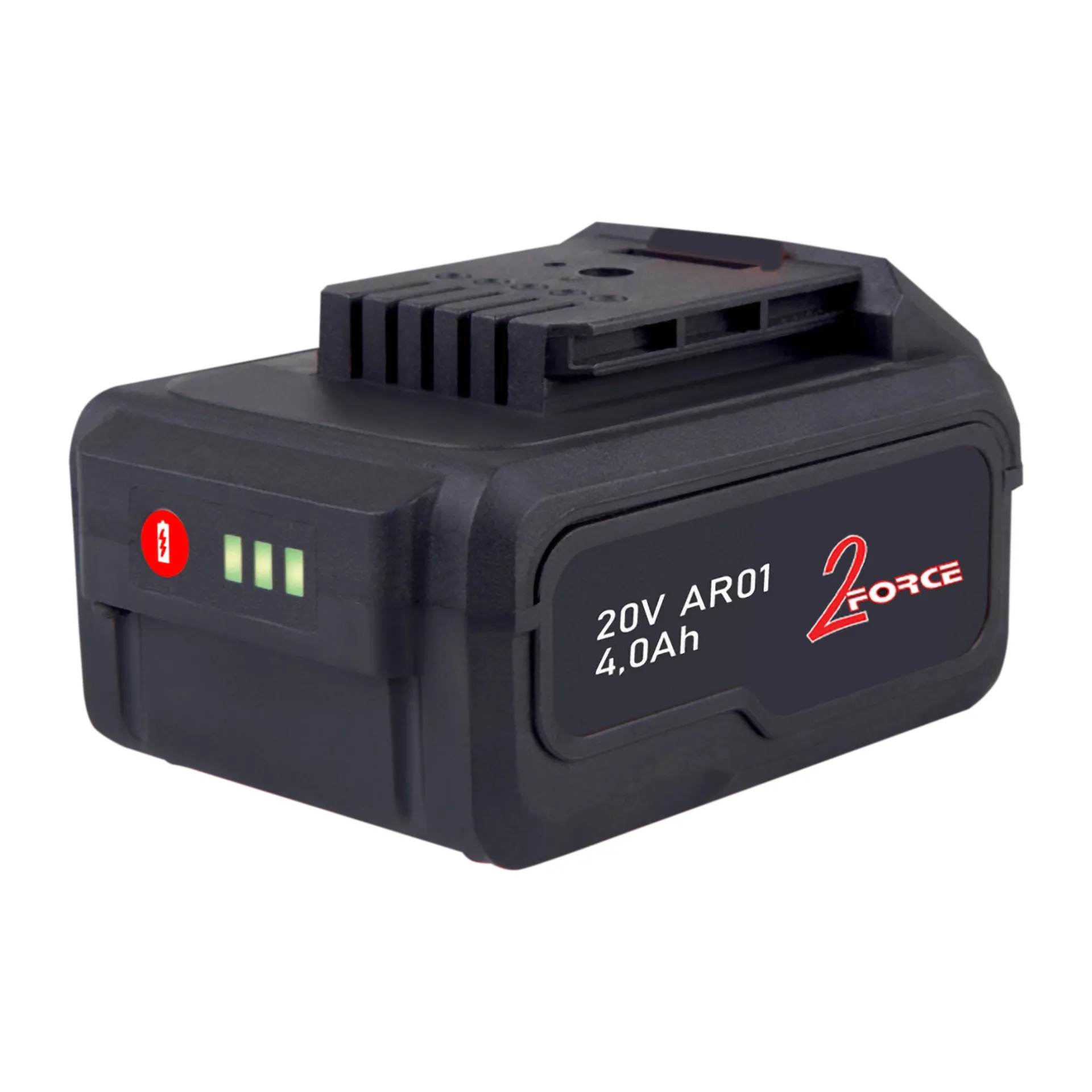 Efficiënte lithium-ionbatterij met een 3-traps oplaaddisplay met LED-indicator. Spanning is 20V. Capaciteit is 4Ah