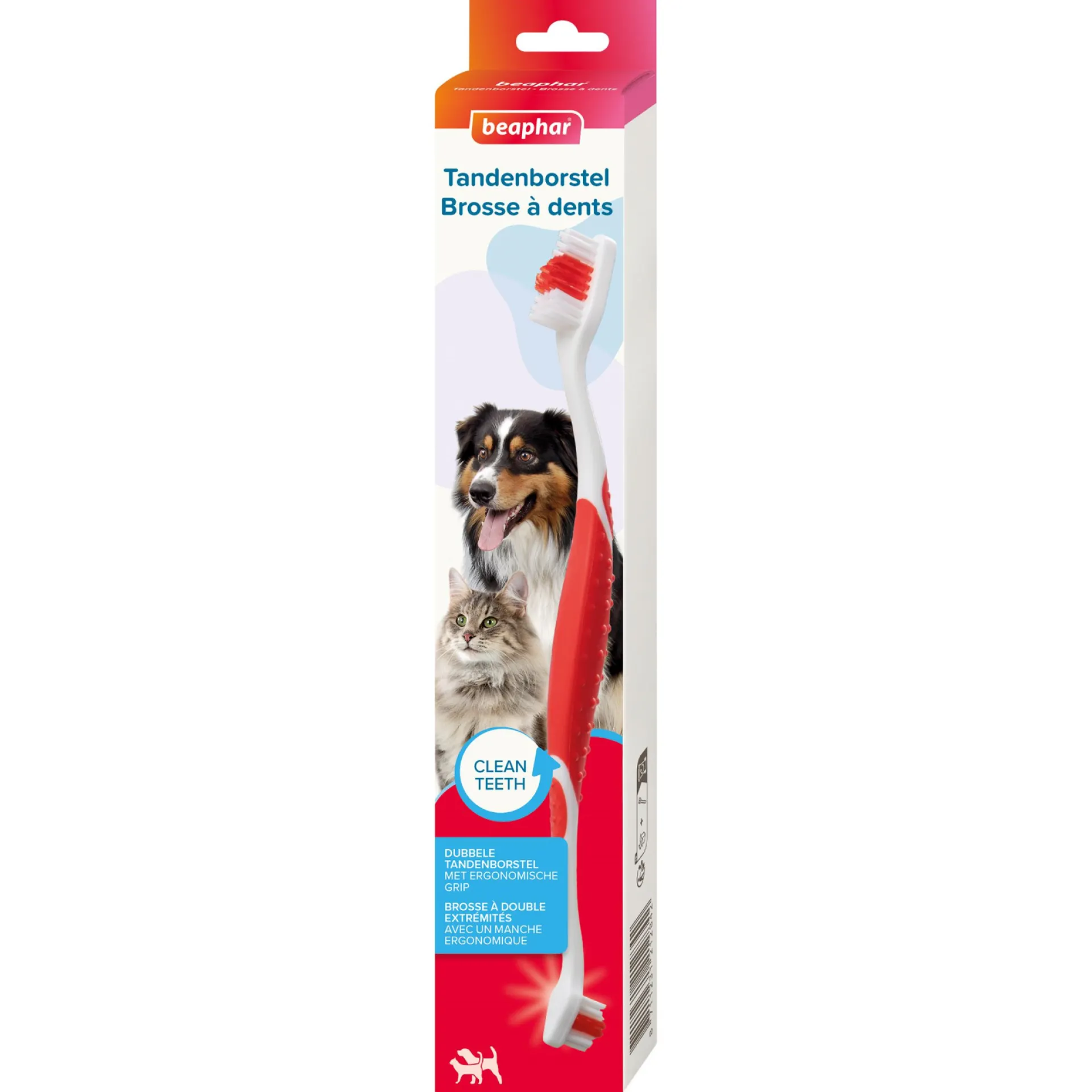 Beaphar tandenborstel voor honden en katten. Met dubbele borstelkop en ergonomisch handvat voor een grondige gebitsreiniging en fris gebit.
