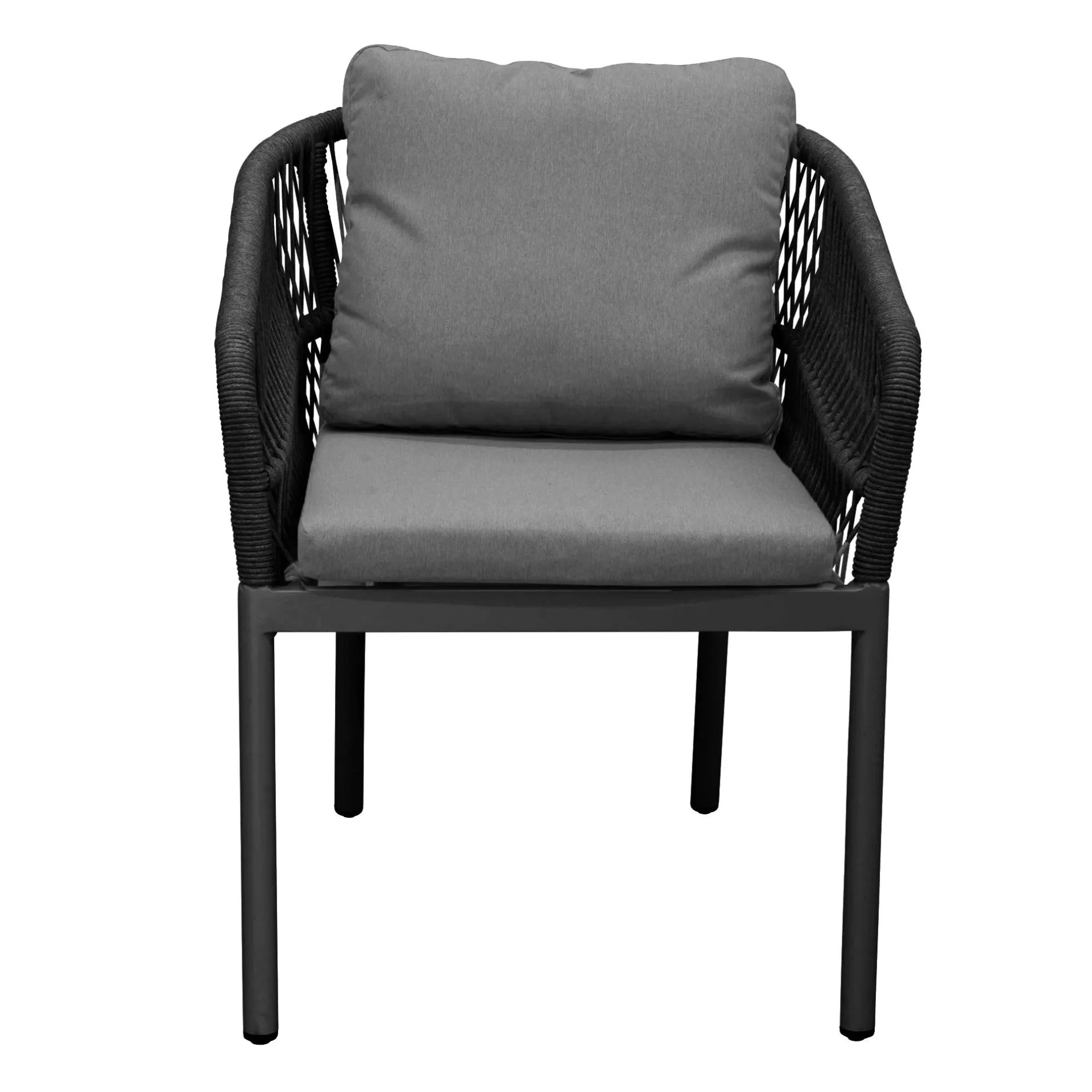 De stoel in antraciet is een stijlvolle en comfortabele keuze voor zowel binnen als buiten. Het 100% aluminium frame zorgt voor een stevige, roestvrije basis, terwijl de rugleuning met touwafwerking de stoel een speelse en moderne uitstraling geeft. Het meegeleverde kussen biedt extra zitcomfort. Dankzij het strakke en minimalistische ontwerp past de stoel moeiteloos bij diverse interieur- en tuinsettings.