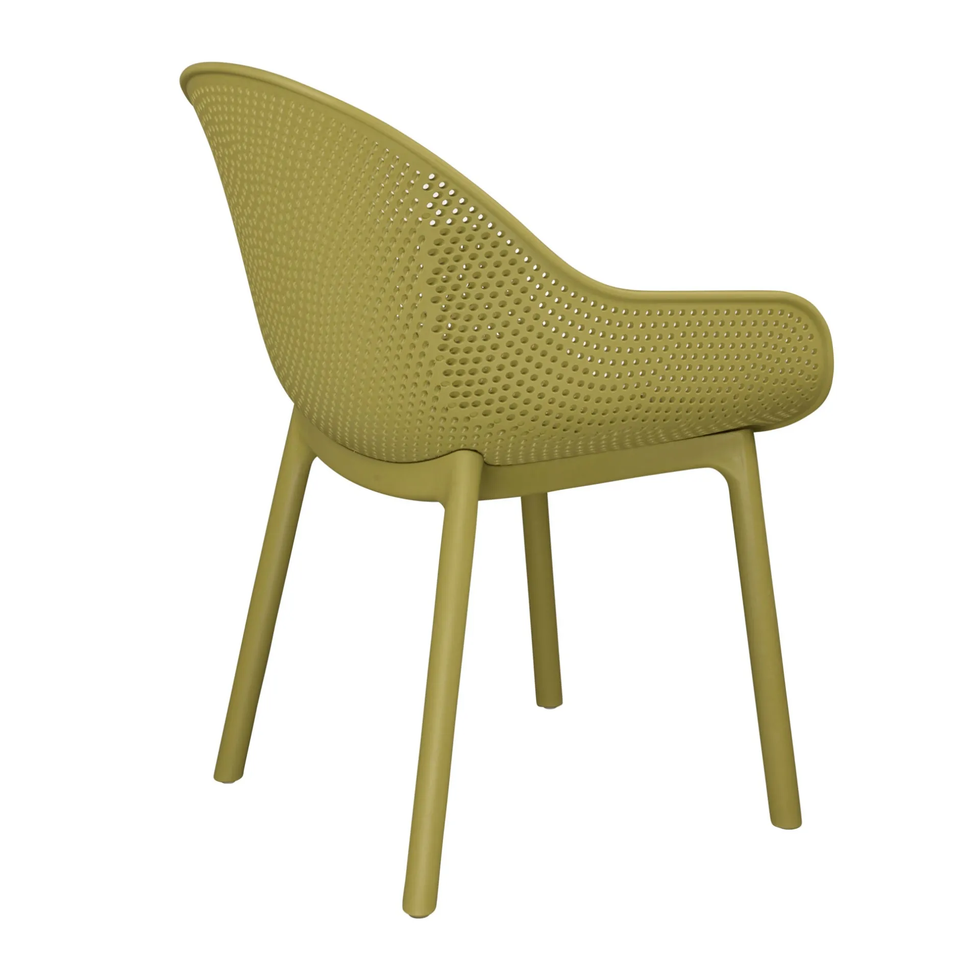 Deze stijlvolle stoel heeft een moderne uitstraling met een subtiel geperforeerd patroon, waardoor hij een luchtige en eigentijdse look krijgt. De comfortabele stoel biedt zowel stevigheid als een prettige zitervaring. De warme kleur voegt een speels accent toe aan elke ruimte, terwijl het materiaal zorgt voor duurzaamheid en eenvoudig onderhoud. Perfect voor zowel binnen als buiten gebruik.