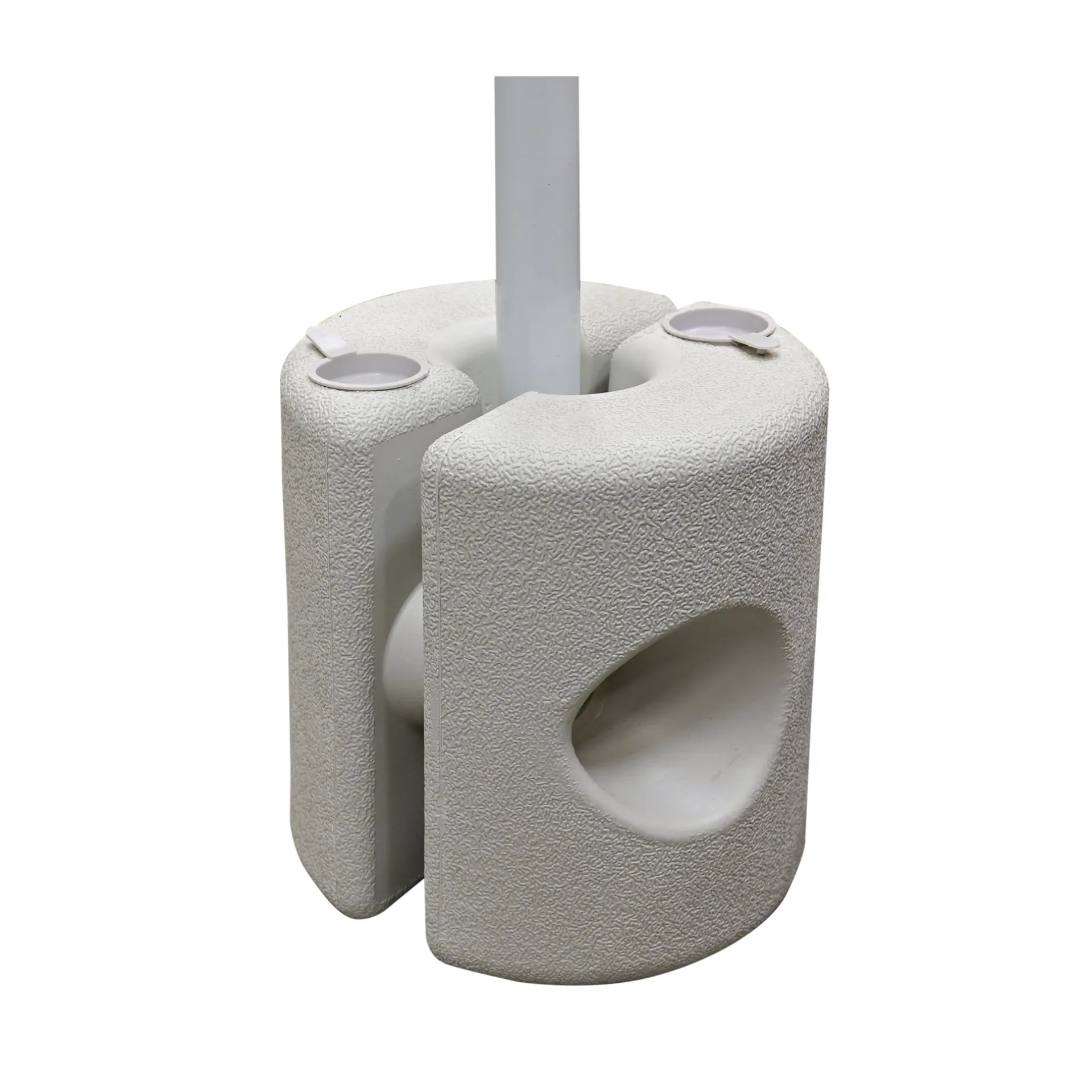 Deze verzwaarde kunststof voeten zorgen voor extra stabiliteit bij winderig weer of plaatsing op harde ondergronden zoals terras, straat of kasseien. Je schuift de poot van de partytent in de basis en vult deze met zand of water. Zo blijft de tent stevig staan, zelfs bij een stevige bries. Ideaal als je minder touwen en haringen wilt gebruiken. Een stuk robuuster dan standaard bodemplaten.