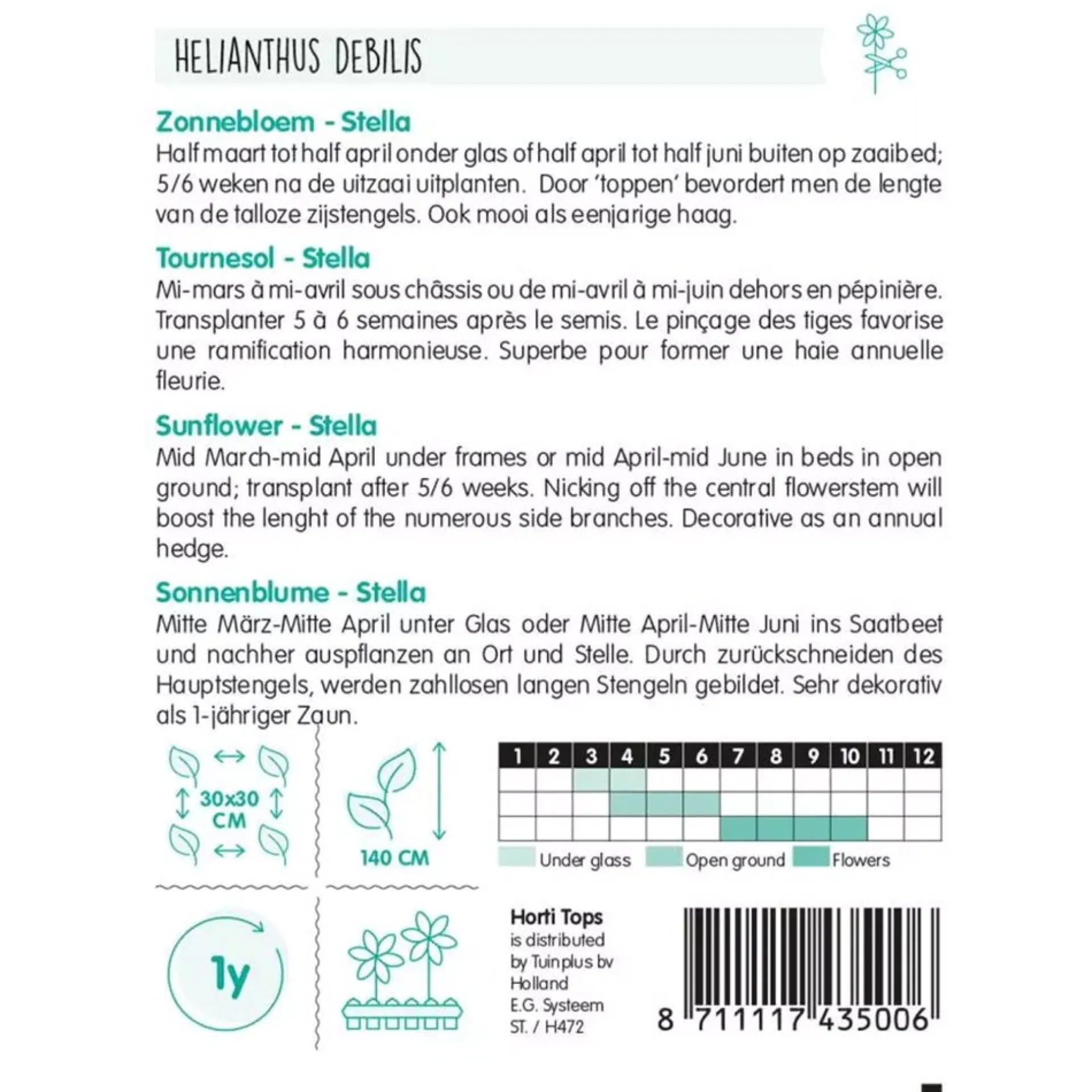 De Helianthus Stella is een compacte zonnebloem met opvallende gele bloemen. Deze variëteit is ideaal voor borders, bloembakken en als snijbloem en zorgt voor een vrolijke zomerse uitstraling in de tuin.