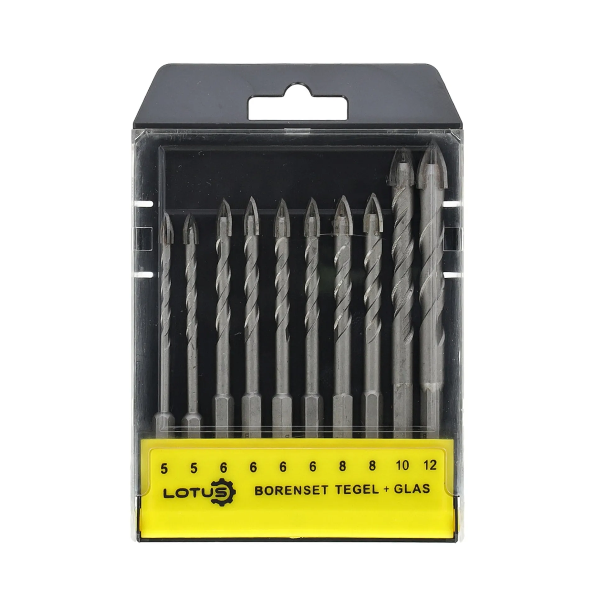 Deze Lotus borenset is geschikt voor het boren in tegels en glas en bestaat uit tien boren in verschillende maten. De set is handig voor precisiewerk bij bijvoorbeeld badkamer-, keuken- of glasprojecten. Dankzij de overzichtelijke kunststof opbergdoos zijn de boren netjes geordend en direct klaar voor gebruik.