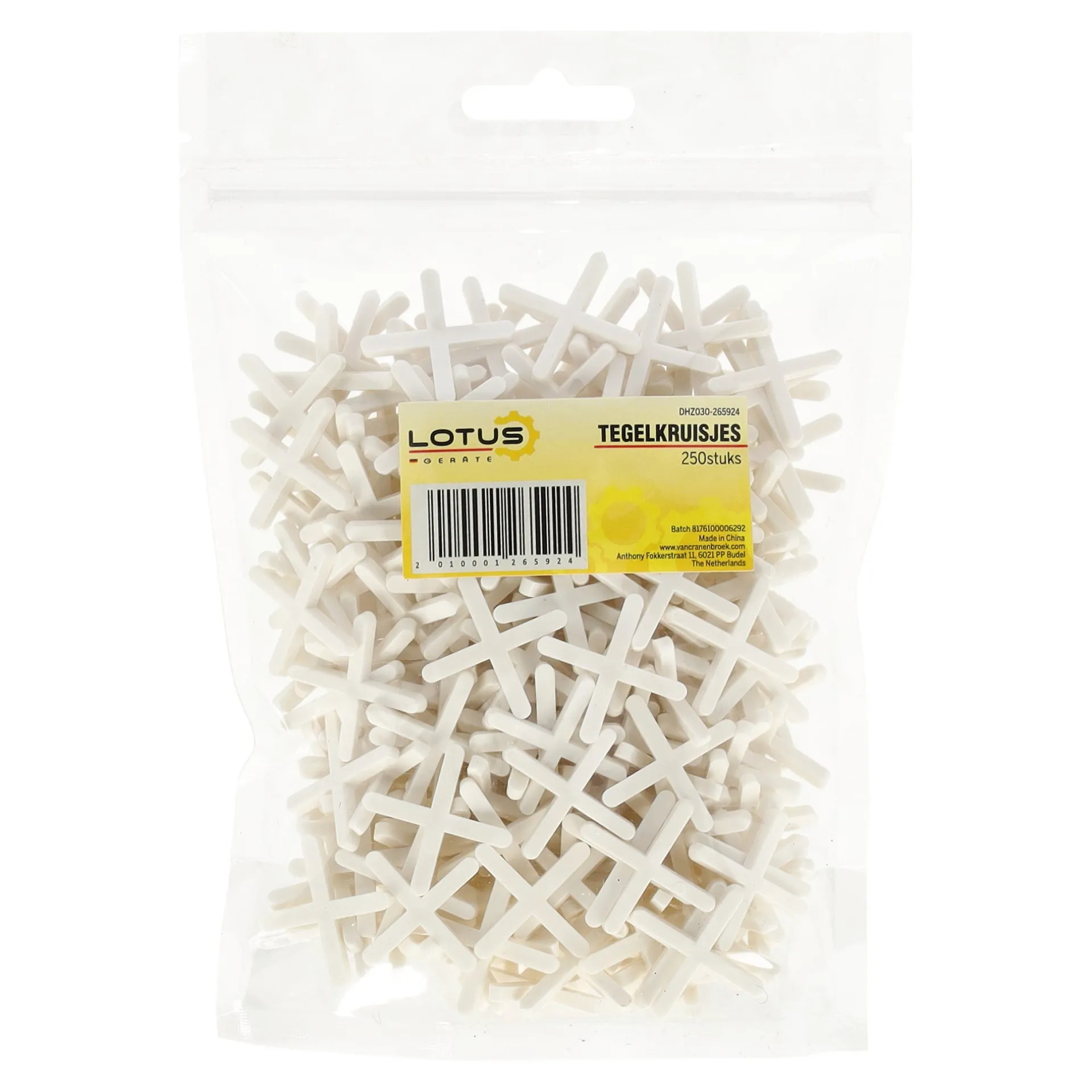 Tegelkruisjes 250 stuks van Lotus zijn een handige en praktische oplossing voor het creƫren van gelijkmatige voegruimtes bij het leggen van tegels. Ideaal voor professionele tegelzetters of doe-het-zelvers die graag nauwkeurig te werk gaan.