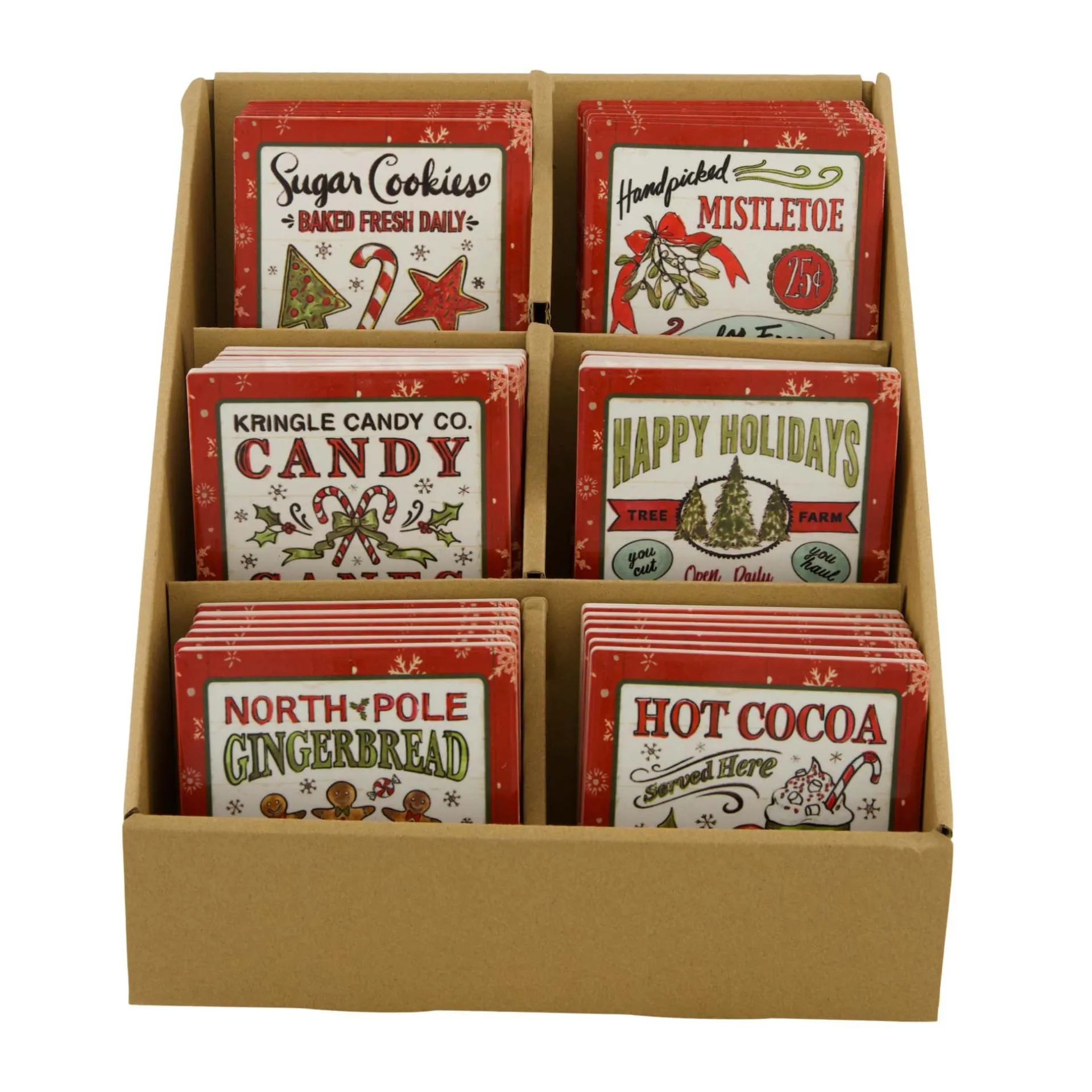 Keramieken onderzetter in kerstthema met nostalgische ontwerpen, verkrijgbaar in zes verschillende uitvoeringen.