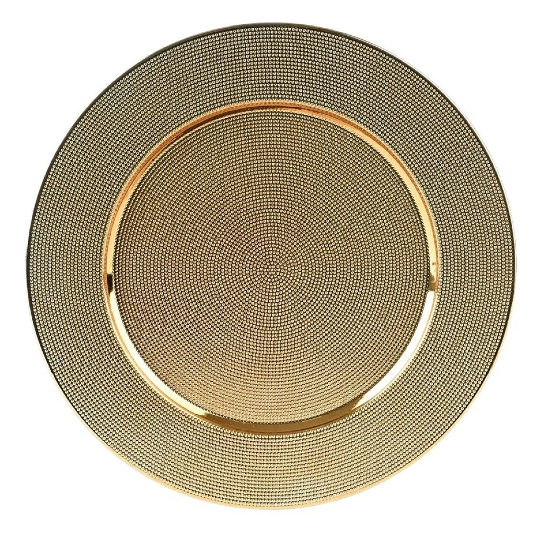 Onderbord in goudkleur met een diameter van 33 cm. Geeft je tafel een chique en feestelijke uitstraling tijdens het diner.