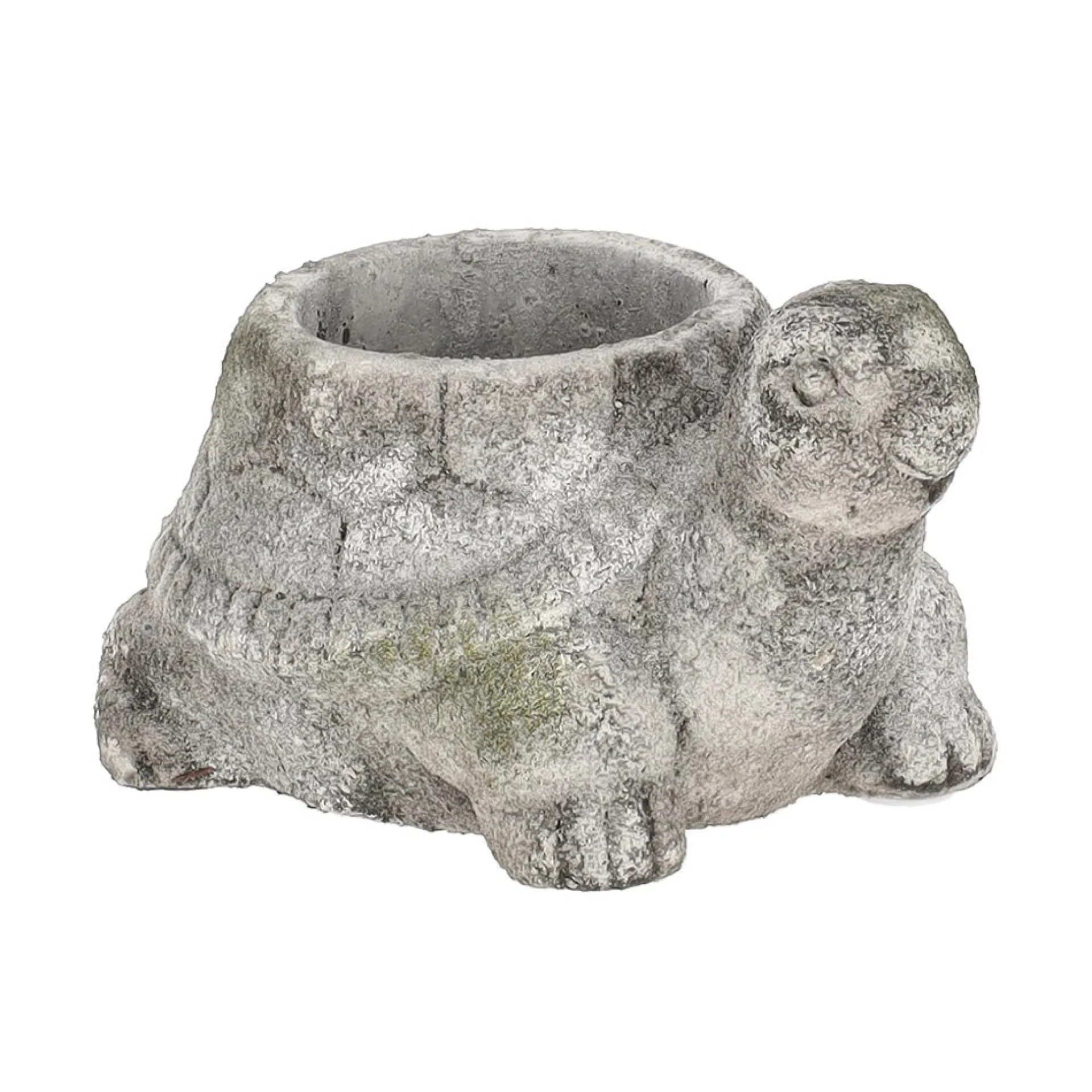 Deze pot in de vorm van een schildpad heeft een natuurlijke cementlook met een licht verweerde afwerking. Het stevige ontwerp maakt hem geschikt voor kleine planten of vetplantjes. Een speels accent voor zowel binnen als buiten.