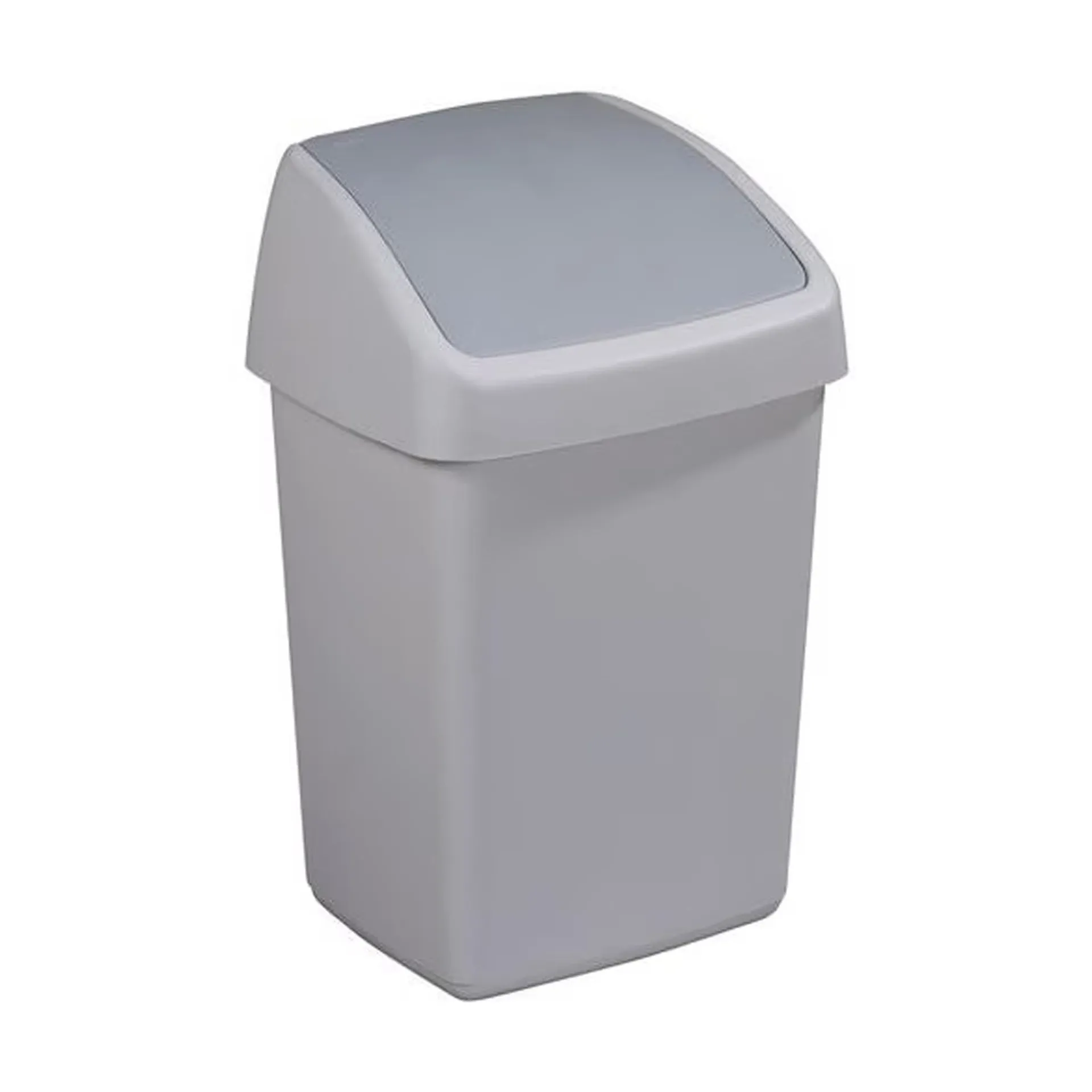 Deze praktische prullenbak is voorzien van een handig klepdeksel, waardoor afval eenvoudig weggegooid kan worden zonder dat de inhoud zichtbaar is. De stevige kunststof behuizing is gemakkelijk schoon te maken en geschikt voor gebruik in keuken, badkamer of kantoor. De neutrale grijze kleur past in elk interieur.