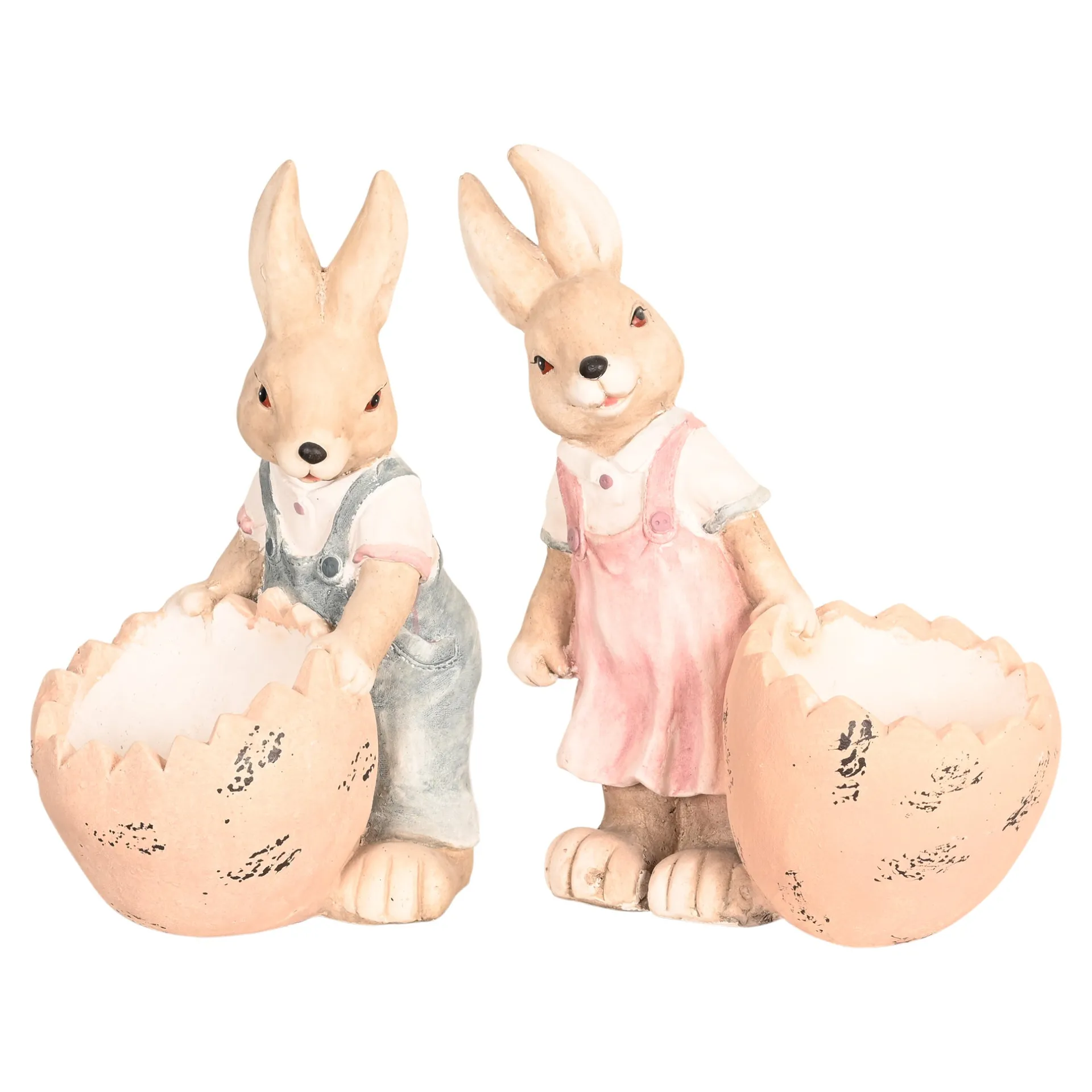 Decoratief konijn met ei, perfect voor paasdecoratie. Verkrijgbaar in twee varianten.