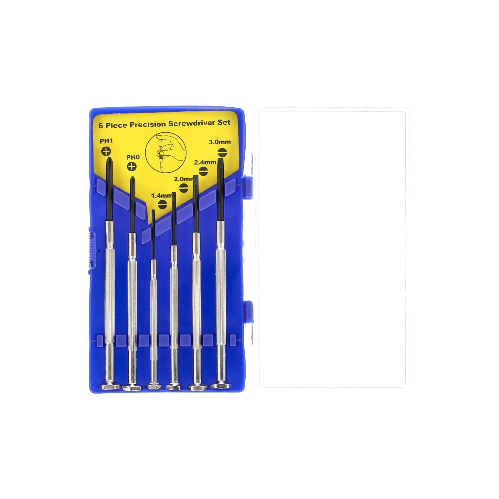 Zes verschillende schroevendraaiers geleverd in opbergbakje. De set is ideaal voor precisiewerk met kleine onderdelen en elektronica. Een uitstekende keuze voor professionals en hobbyisten, zoals in de modelbouw.