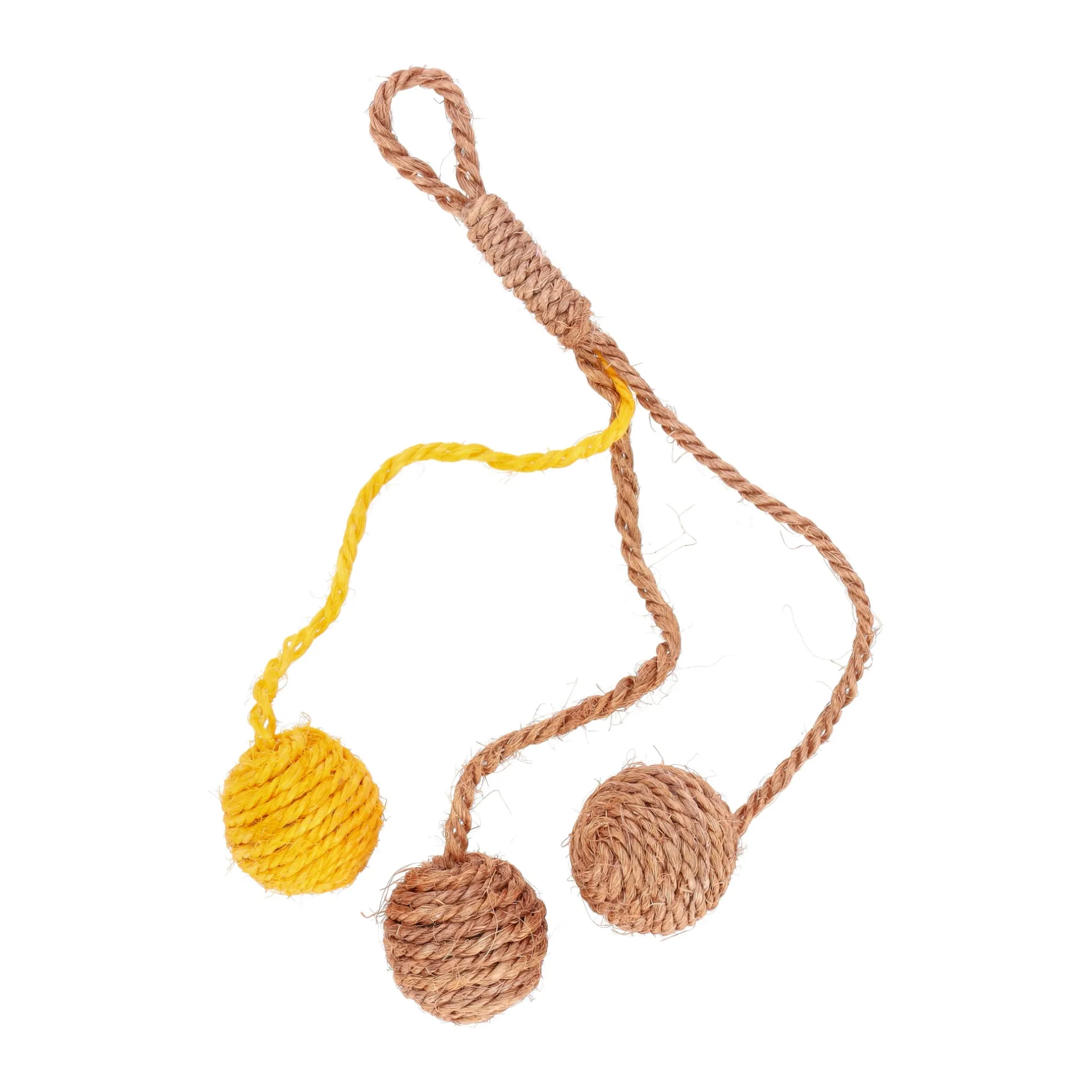 Fashion Friendly Pet Speelgoed Kat Ballen Met Touw 25 Cm Bruin/geel