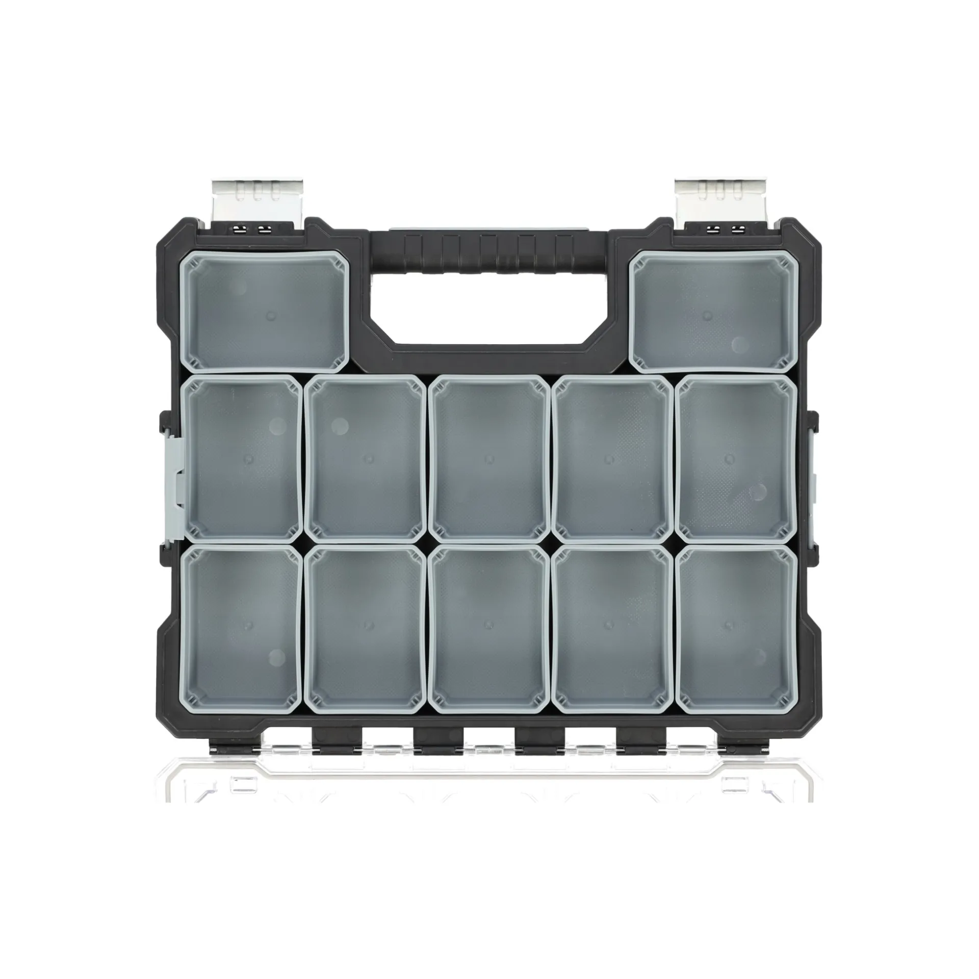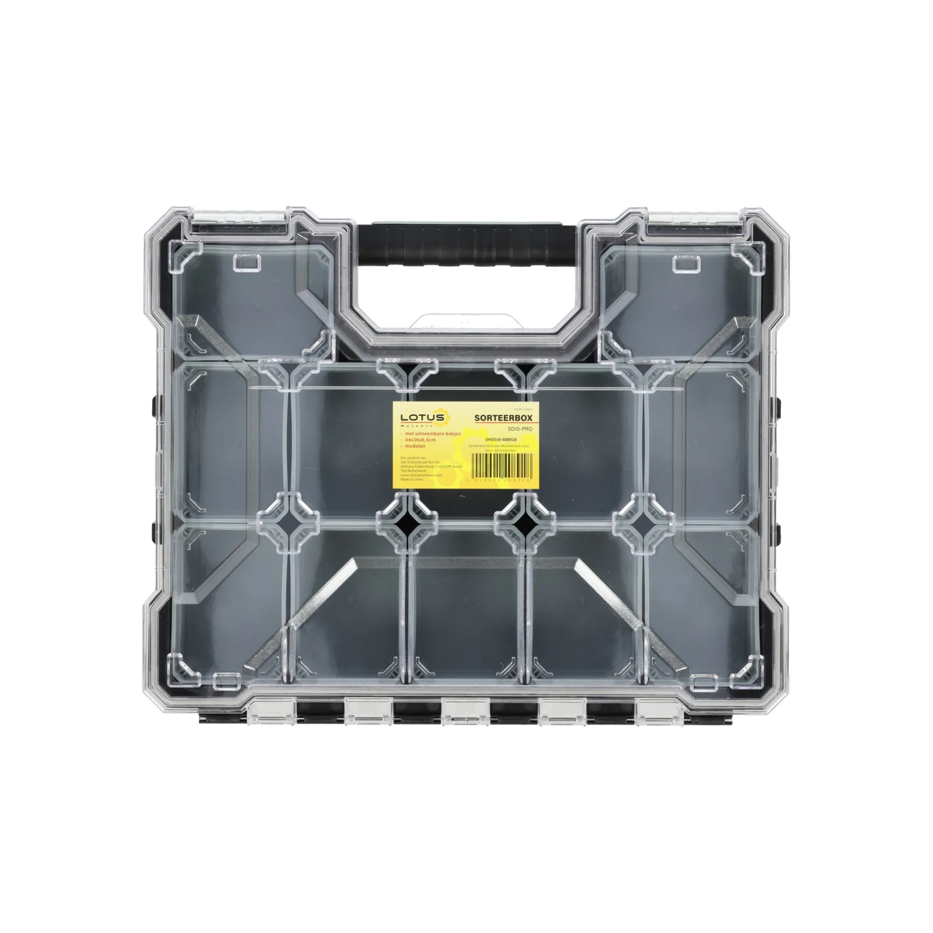 Duurzame en praktische sorteerbox SD10 Pro, met afmetingen van 44x36x6,5 cm. Voorzien van meerdere compartimenten voor het opbergen en organiseren van kleine onderdelen zoals schroeven, spijkers of hobbyartikelen. Ideaal voor zowel thuisgebruik als professioneel gebruik.