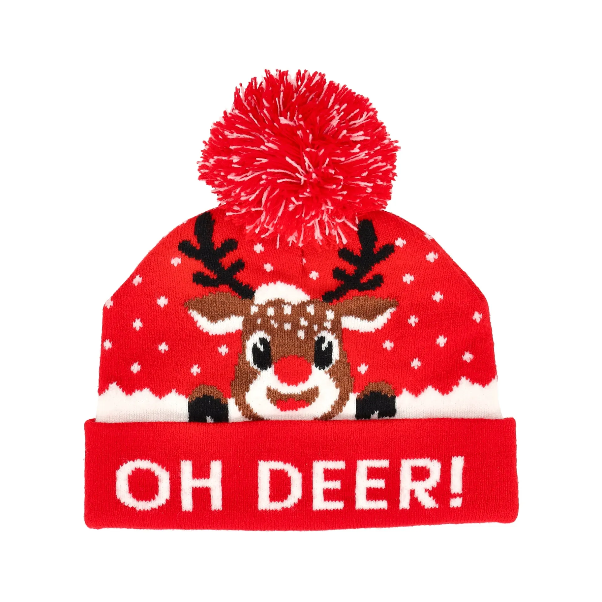 De muts Oh Deer in kerststijl is geschikt voor kinderen en geeft een speelse, feestelijke uitstraling.