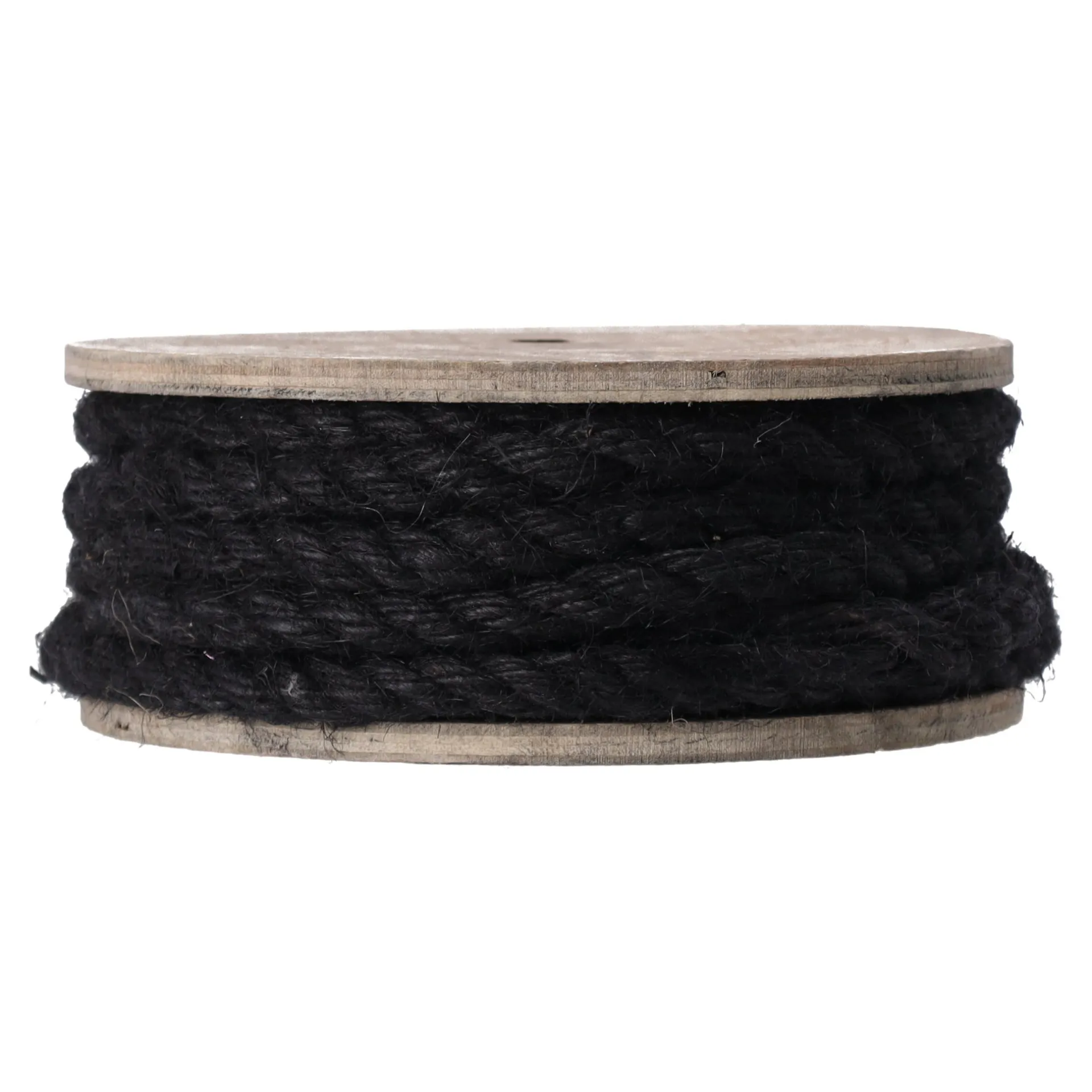 Deze zwarte juten touwspoel is ideaal voor decoratief gebruik, knutselprojecten of het inpakken van cadeaus.