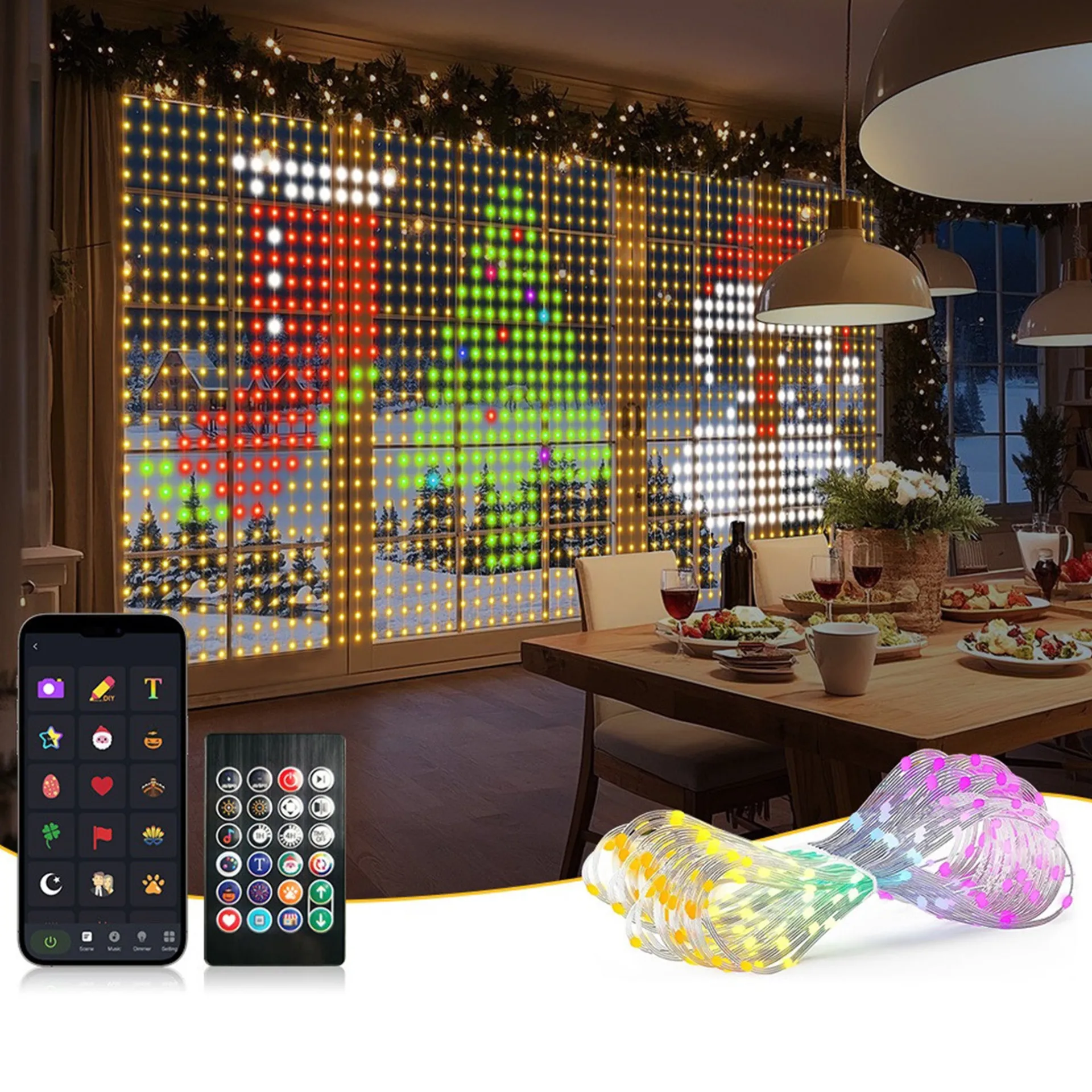 Laat de magie van de feestdagen tot leven komen met dit vrolijke kerstgordijn vol sprankelende RGB LED’s – maar liefst 400 stuks die samen een kleurrijk spektakel creëren. Of je nu zin hebt in een knusse warme gloed of een knallend lichtfeestje, jij bepaalt het helemaal zelf met de afstandsbediening of via de app op je telefoon. Het gordijn is twee meter breed en twee meter hoog, perfect om je raam, muur of tuin om te toveren tot een echte kerstshow. En geen zorgen over het weer: dit lichtgordijn voelt zich ook buiten helemaal thuis. Plug het in, kies je favoriete lichteffect en laat de feestdagen maar beginnen!