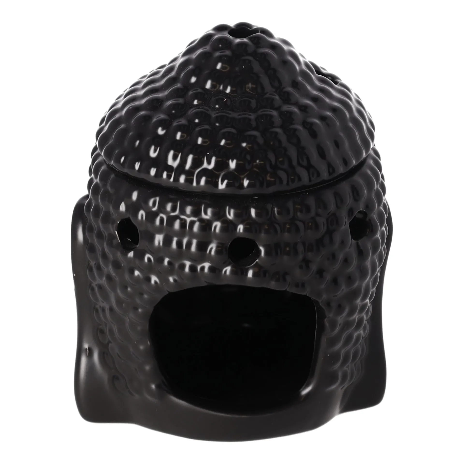 De creascents waxmelts brander in zwarte Buddha-stijl, 14 cm hoog, is geschikt voor waxmelts en essentiële oliën. Een stijlvolle toevoeging aan je interieur, perfect voor ontspanning en heerlijke geuren.